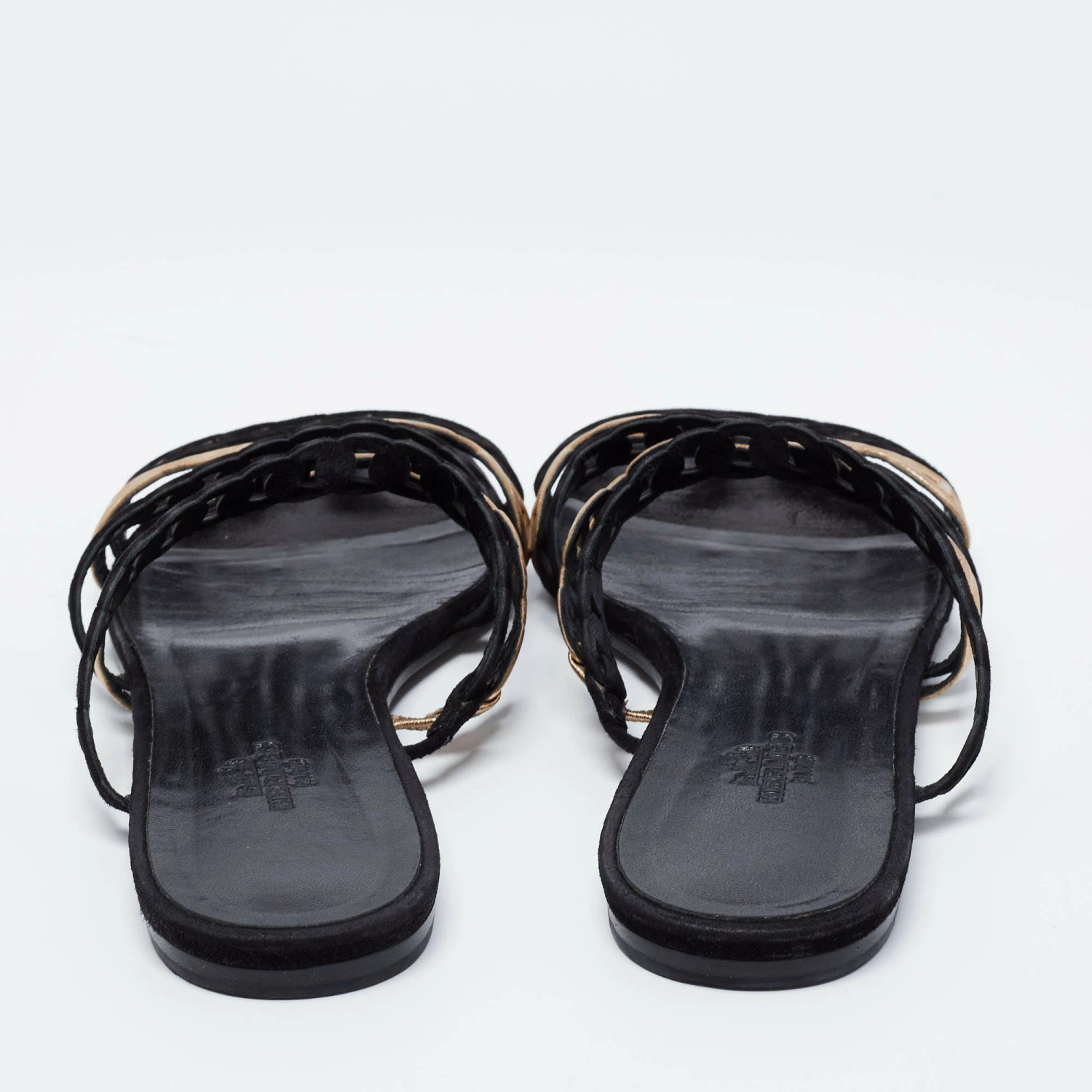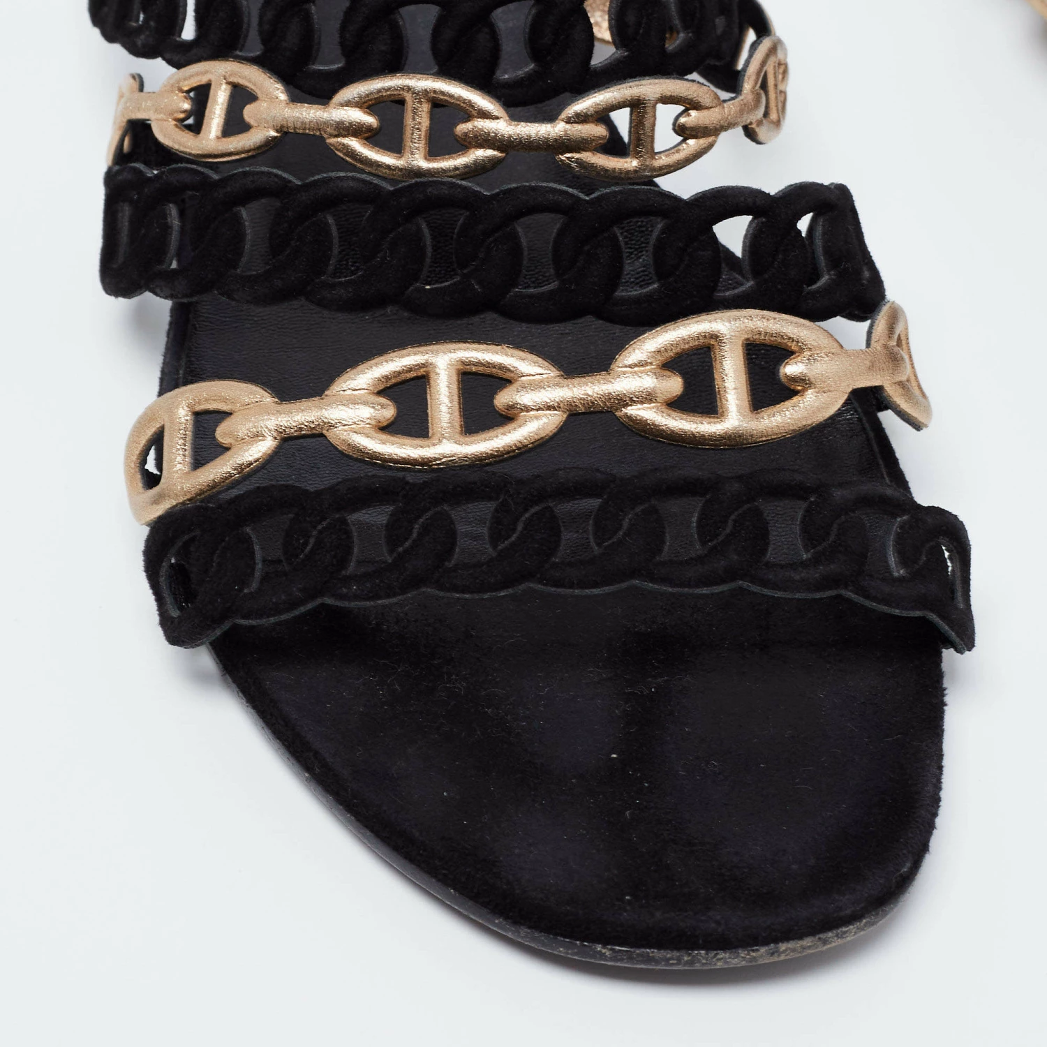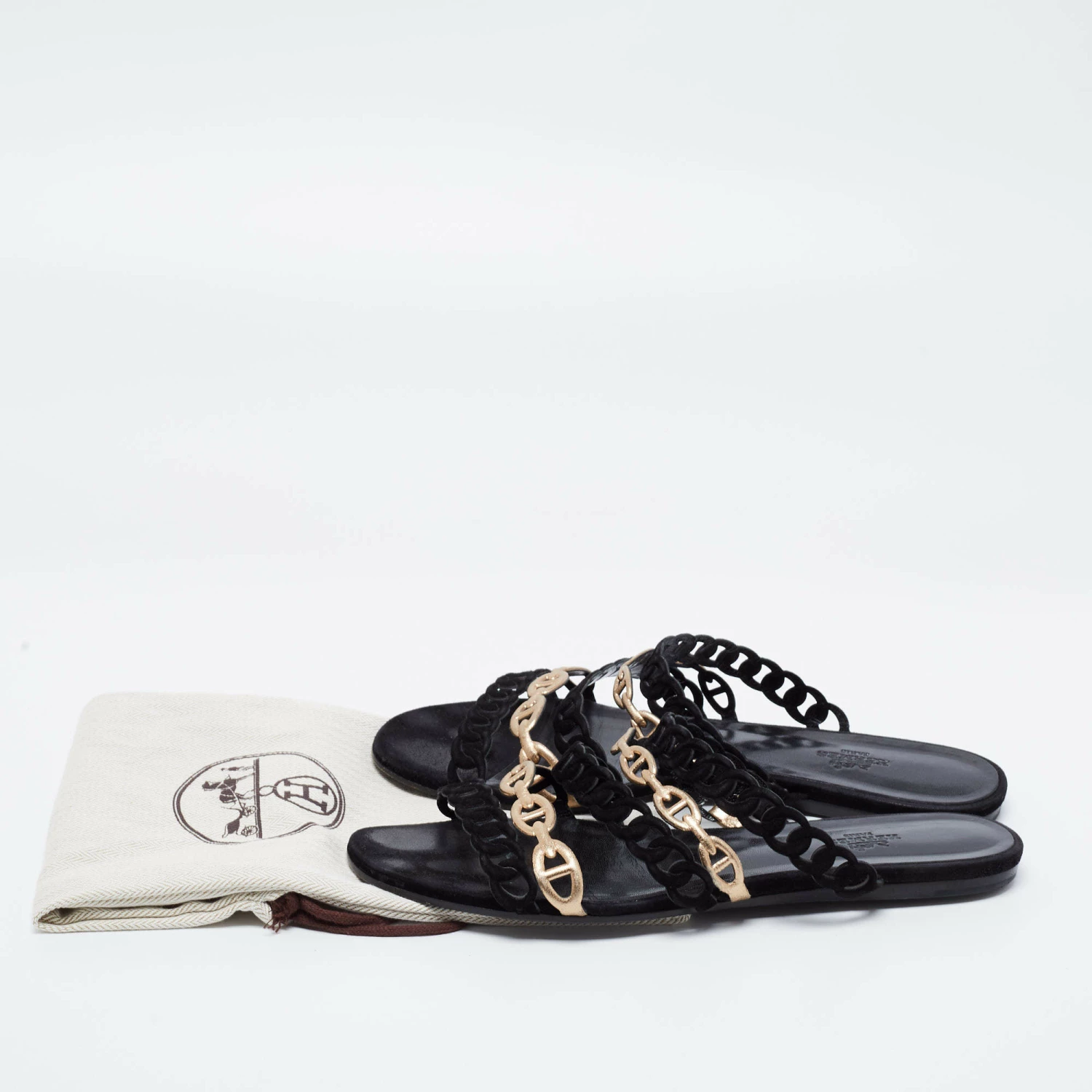 How stylish and chic do these D’ancre Chaine sandals from Hermès look! These flat sandals have an open-toe silhouette featuring multiple anchor straps across the vamps that resemble interlocking chains. Get them today and experience comfort like never before.