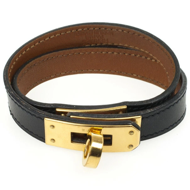 Adorn your wrist with the trendy Kelly Double Tour Bracelet from Hermes. Both ends of the bracelet feature slotted palladium-plated hardware that pass over the centrally placed key-style lock mechanism for a secure fit.Original Retail Price: US $739