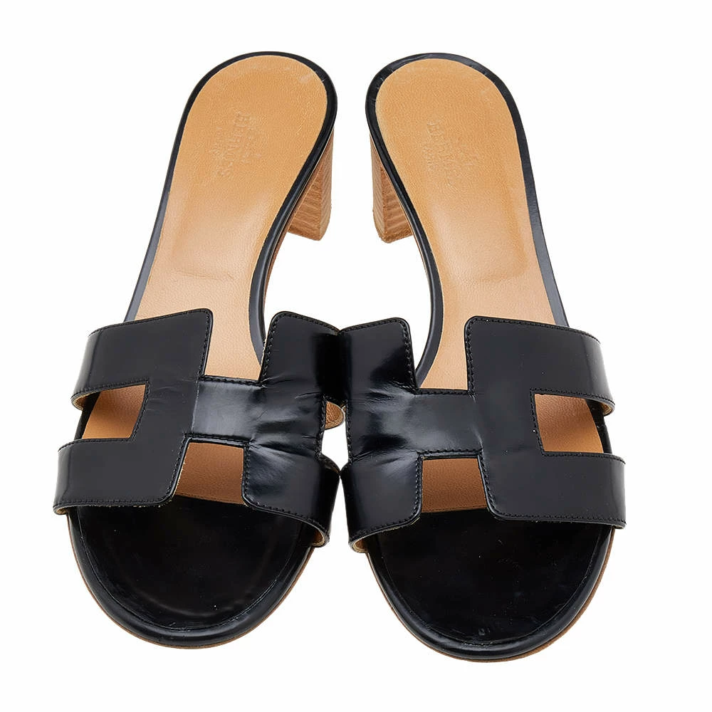 Crafted in leather, these Oasis slide sandals from Hermès are classy and comfortable with their block heels. These slides feature the signature H-shaped straps at the front. The insoles are lined with leather and carry the brand label.