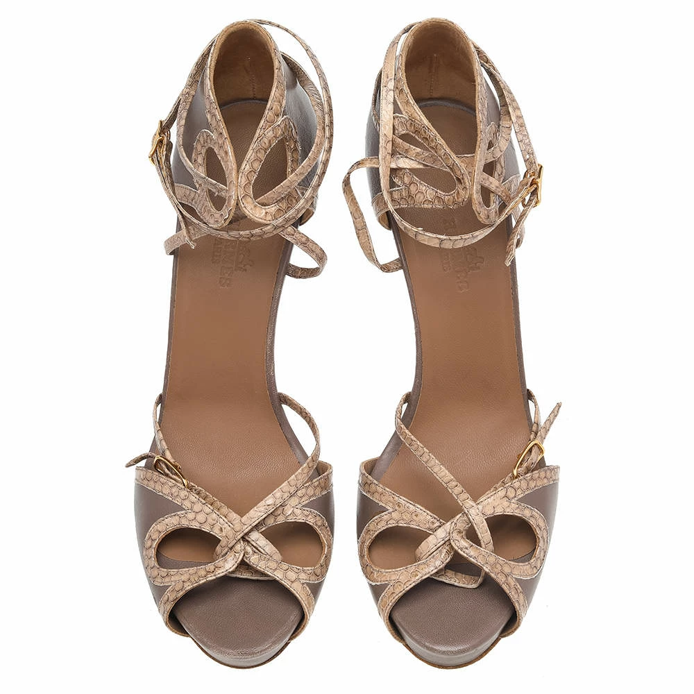 Infuse your style with a classic touch as you wear these sandals. These sandals from the House of Hermés are beautiful in every way! They are made using brown-beige python leather and leather on the exterior with cut-out details adorning the upper. Revamp your look by wearing these impeccable sandals.