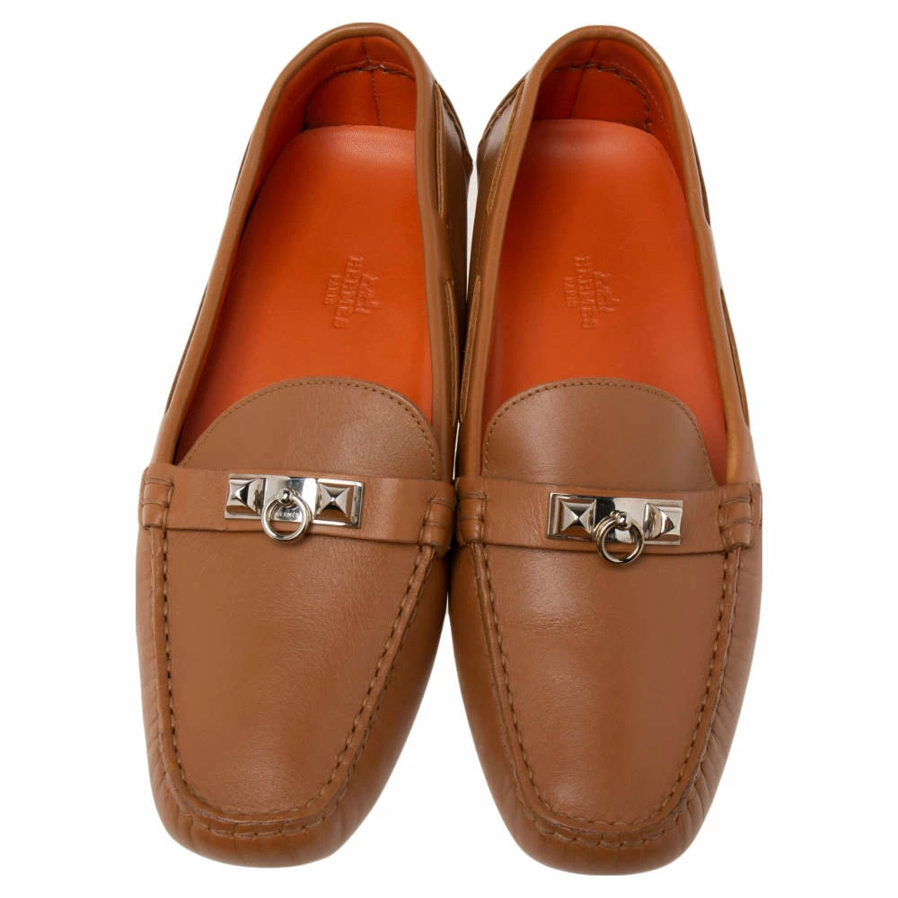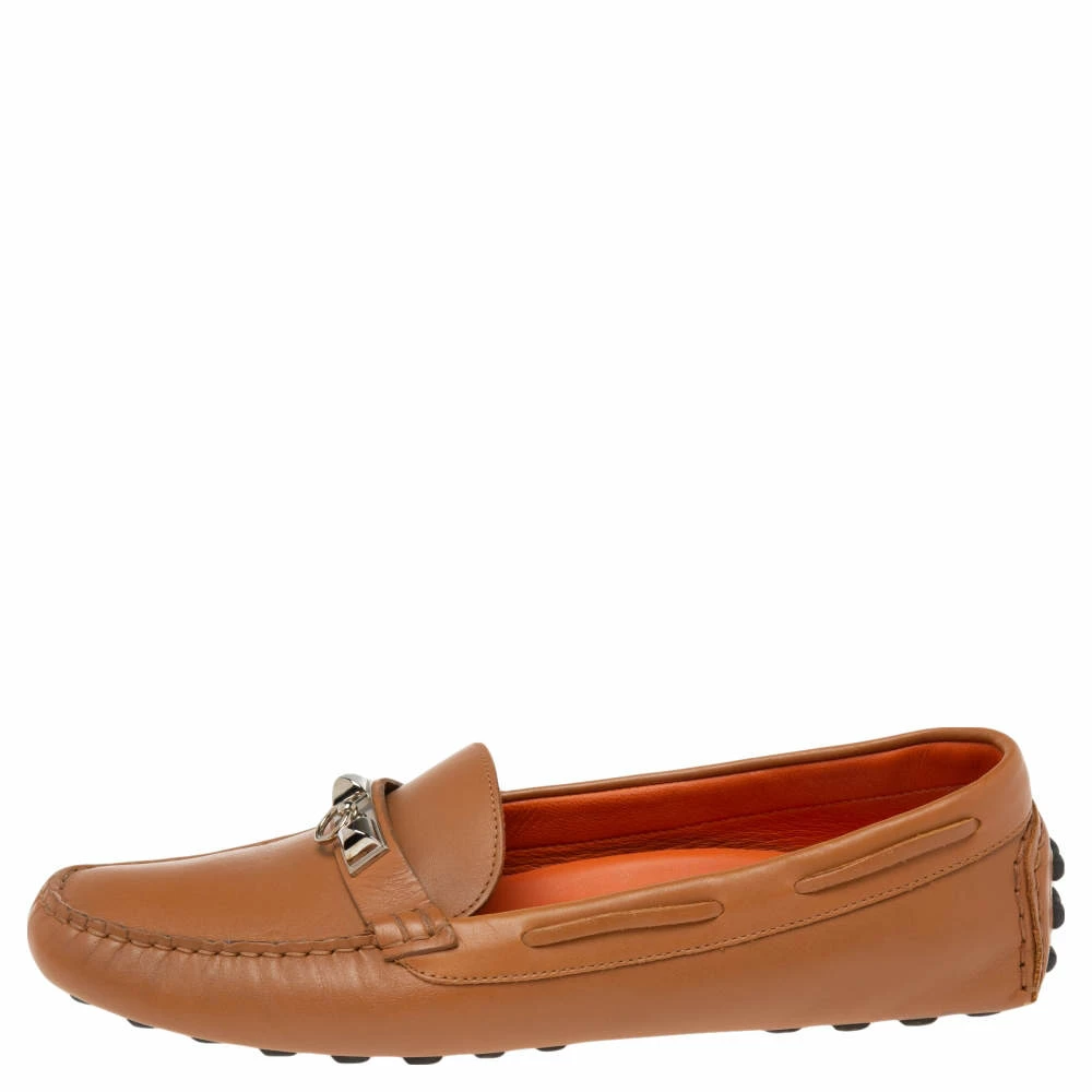 Hermès is known for its high shoemaking skills and craftsmanship. These brown Irving loafers are crafted in leather and feature a round-toe. A mini dog buckle in silver tone is perched on the vamps and the rubber soles make this pair a comfortable pick. With snug leather lining on the insoles, this everyday style goes well with all your attires.