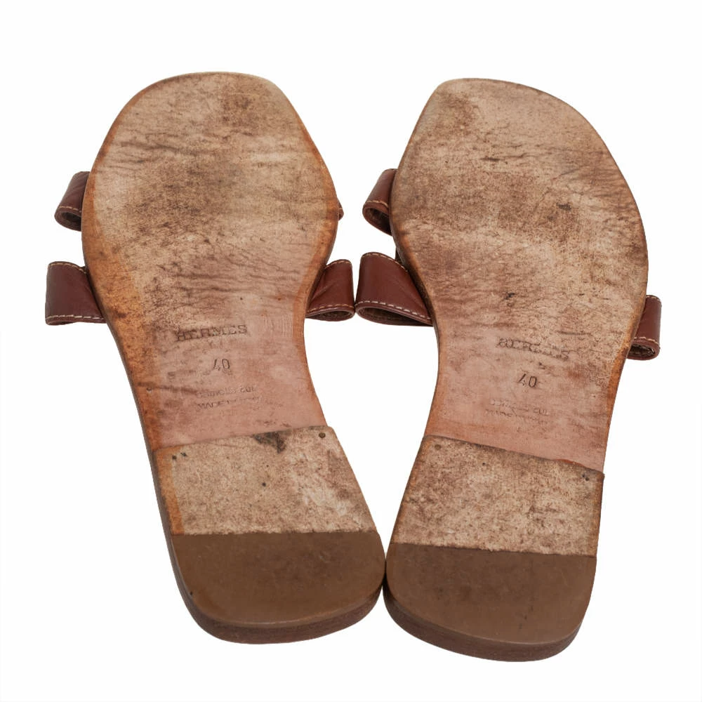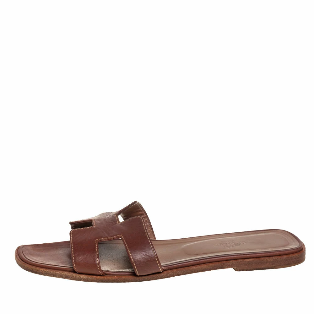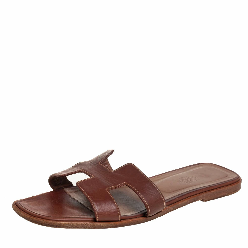 Add the iconic Hermès Oran sandals to your shoe collection with this pair. These brown Oran flat sandals have been crafted in Italy using leather and they feature the iconic H on the vamps and lined insoles to provide comfort at every step.