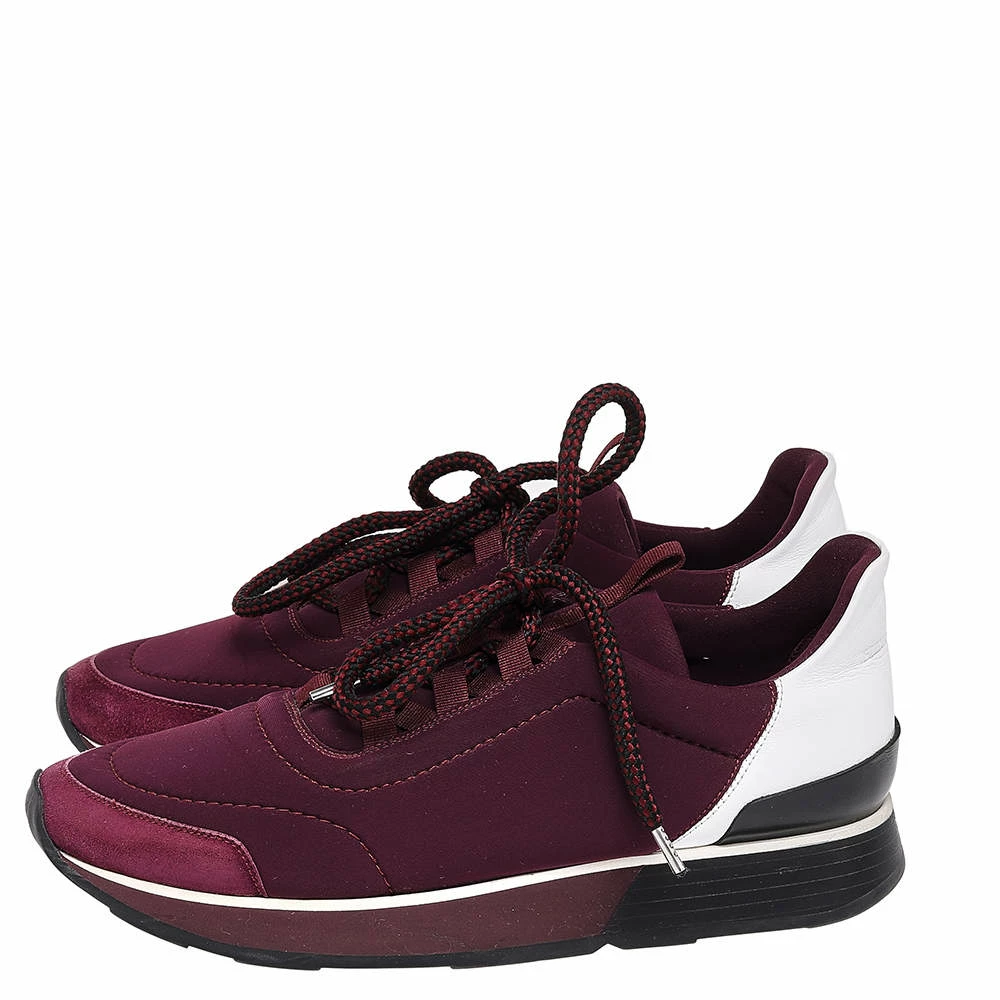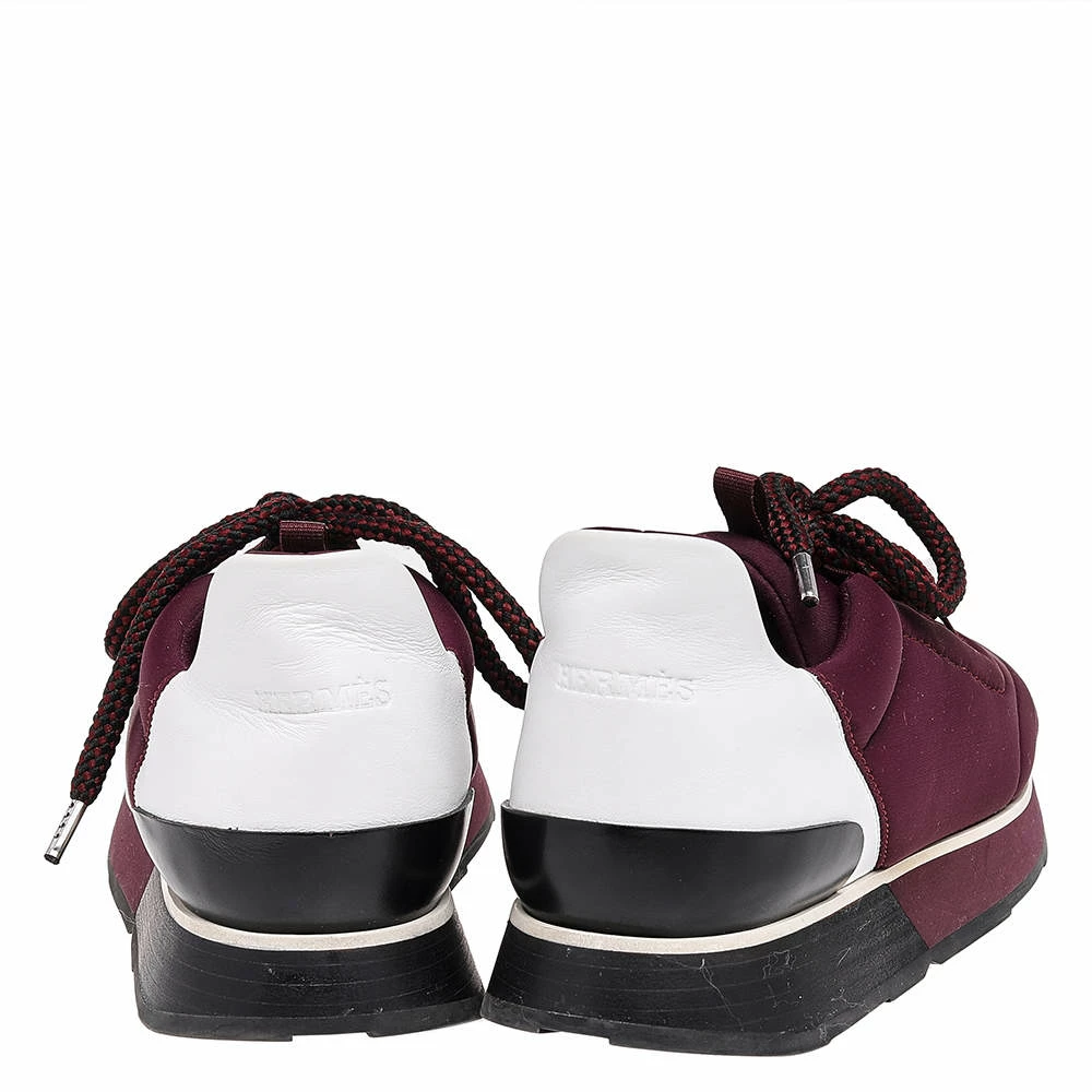 Pull off a stylish look with this pair of Miles sneakers from Hermès. Crafted from a combination of quality materials, this pair embodies a true blend of luxury and comfort. The shoes feature lace-up fronts, tonal stitching, round toes and leather-lined insoles. They are ideal for everyday wear.