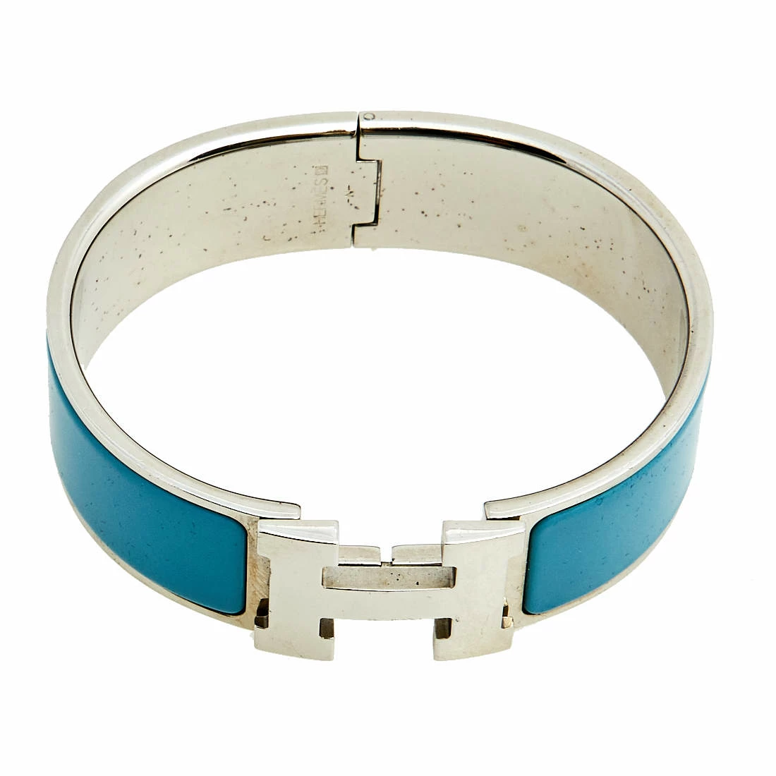 One of the most popular designs from Hermès when it comes to accessories is the Clic Clac H. This collection is a hit amongst fashionable women and it’s time you have one yourself. This piece is crafted from palladium-plated metal and designed with blue enamel and a swivel H.
