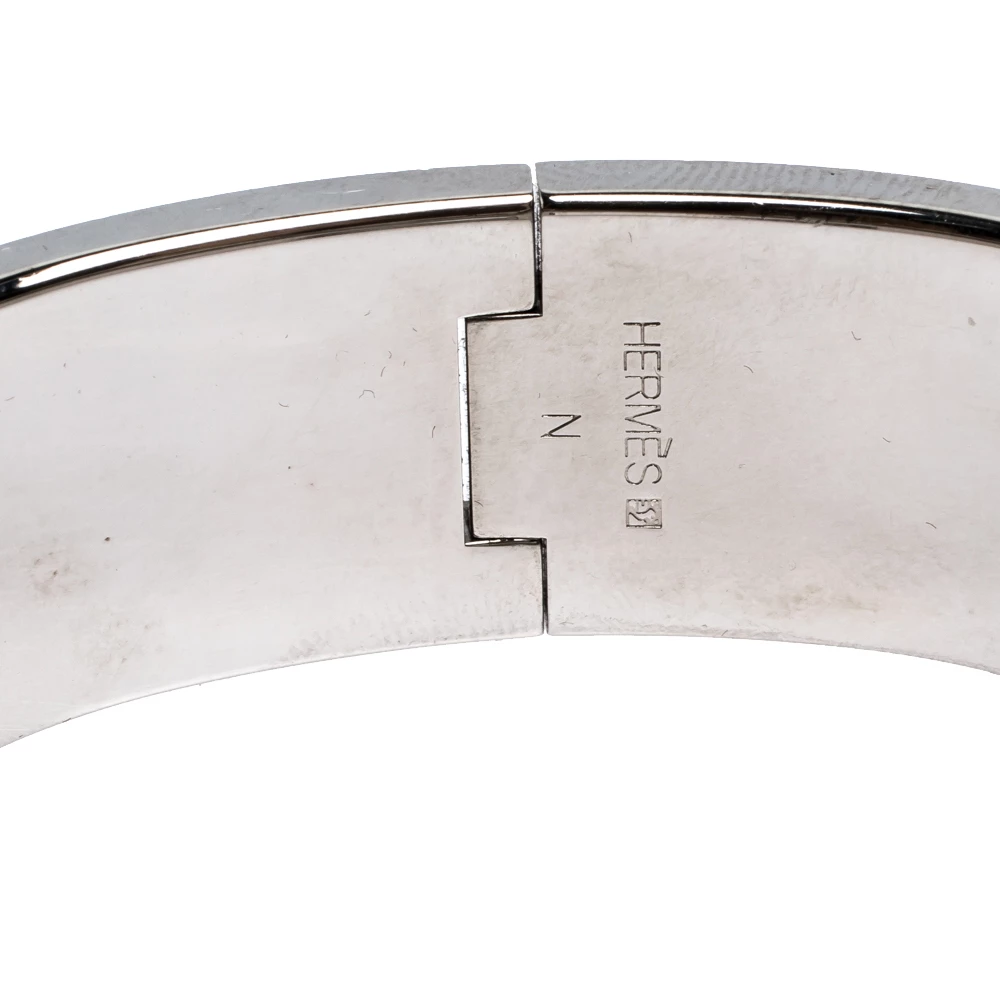 One of the most popular designs from Hermes when it comes to accessories is the Clic Clac H. The Clic Clac H collection is a hit amongst fashionable women and it’s time you have one yourself. This piece is crafted from palladium-plated metal and designed with blue enamel and a swivel H.