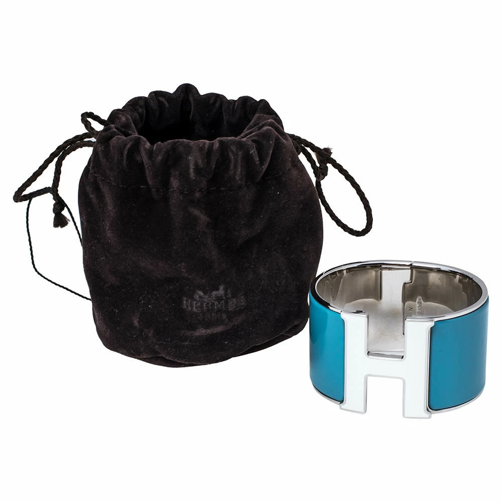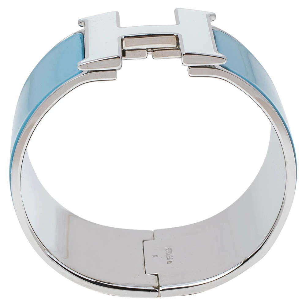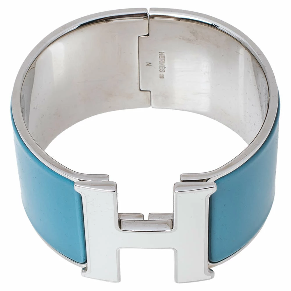 Adorn your wrist with this stunner of a bracelet from Hermès. The piece is from their Clic Clac H collection and it has been crafted from palladium-plated metal and designed with blue and white enamel. This bracelet is complete with the iconic H. Get those compliments you longed for as you pair it with your everyday outfits!