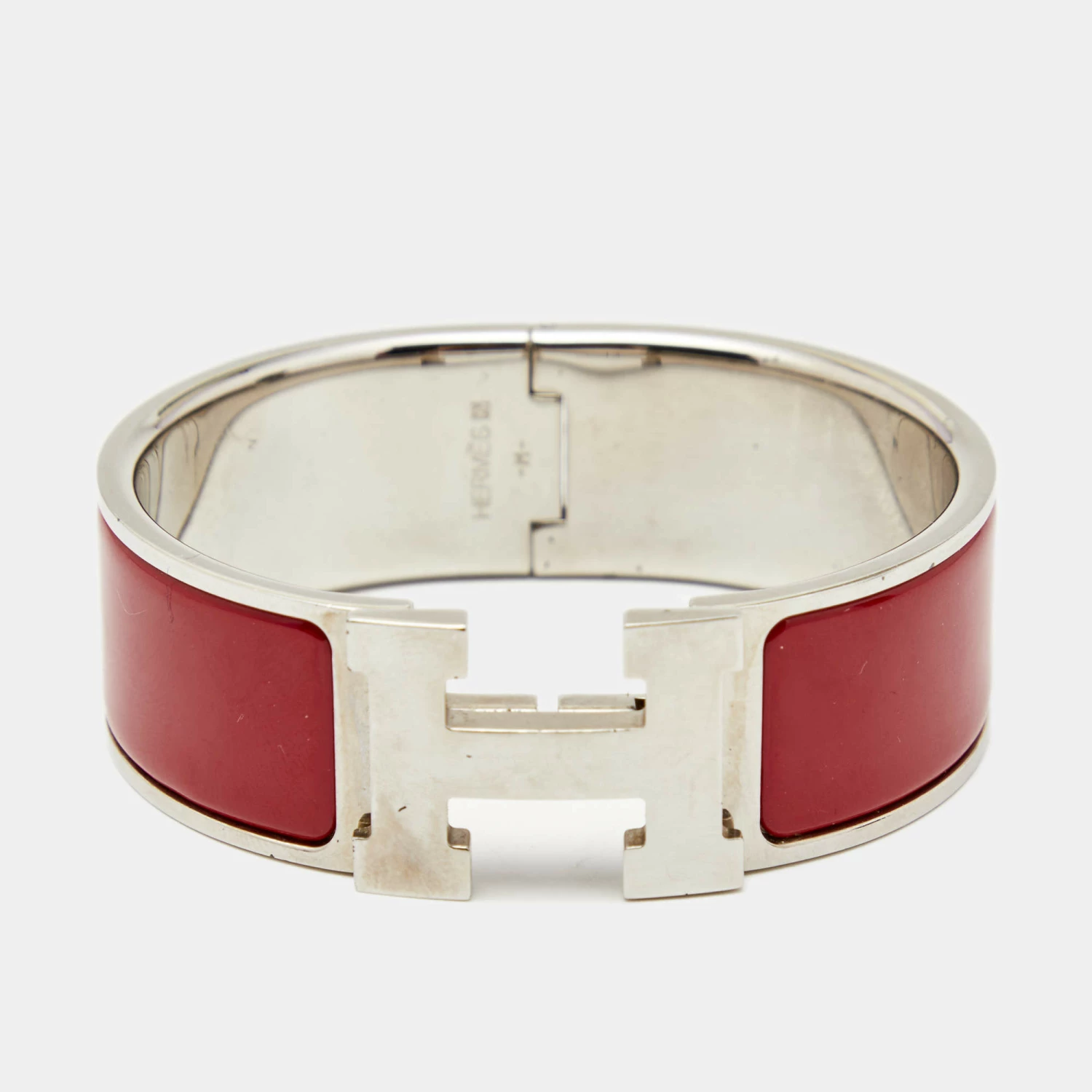 Adorn your wrist with this stunner of a bracelet from Hermès. The piece is from their Clic Clac H collection and it has been crafted from palladium-plated metal and designed with red enamel. This bracelet is complete with the iconic H. Get those compliments you longed for as you pair it with your everyday outfits!