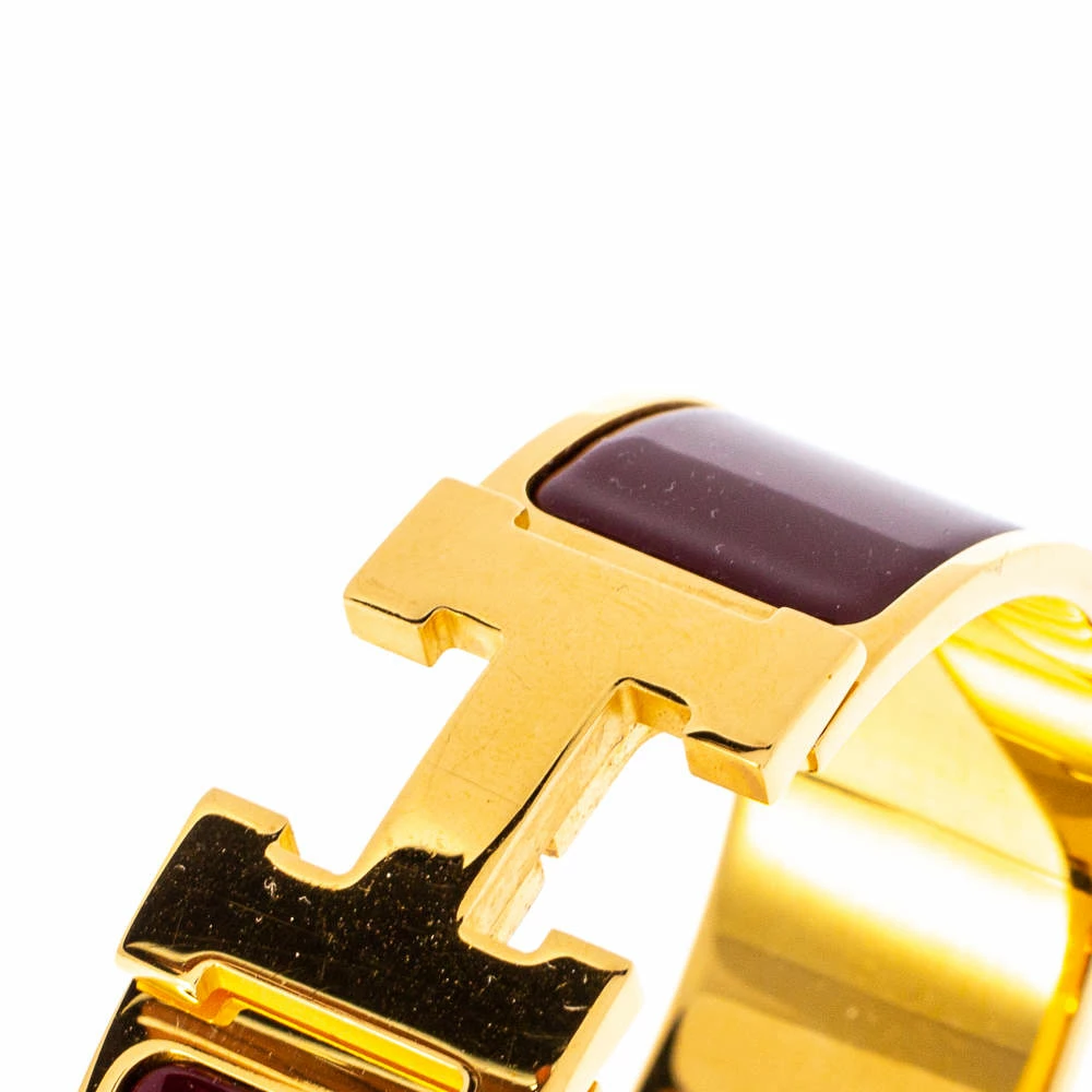 One of the most popular designs from Hermes when it comes to accessories is the Clic Clac. The Clic Clac H collection is a hit amongst fashionable women and it’s time you have one yourself. This piece has been crafted from gold-plated metal and designed with red enamel and made complete with a swivel H.
