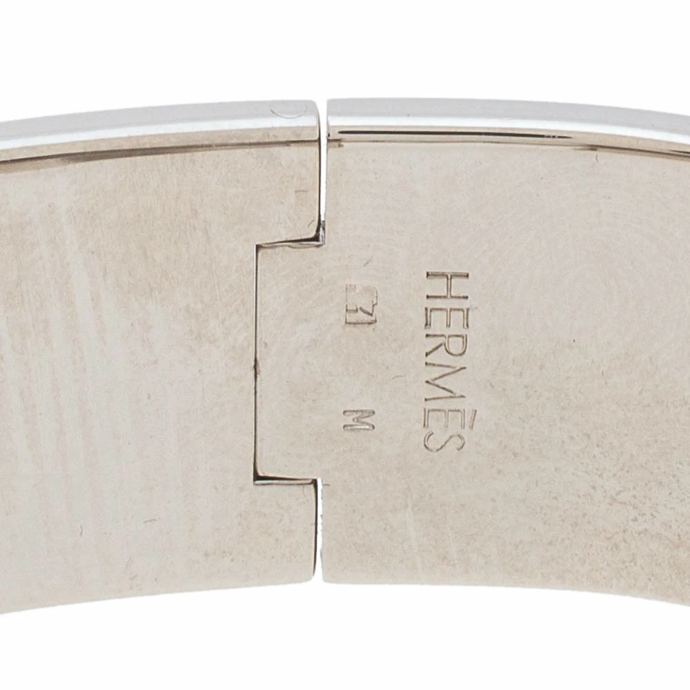 Adorn your wrist with this stunner of a bracelet from Hermès. The piece is from their Clic Clac H collection and it has been crafted from palladium-plated metal and designed with yellow enamel. This bracelet is complete with the iconic H. Get those compliments you longed for as you pair it with your everyday outfits!