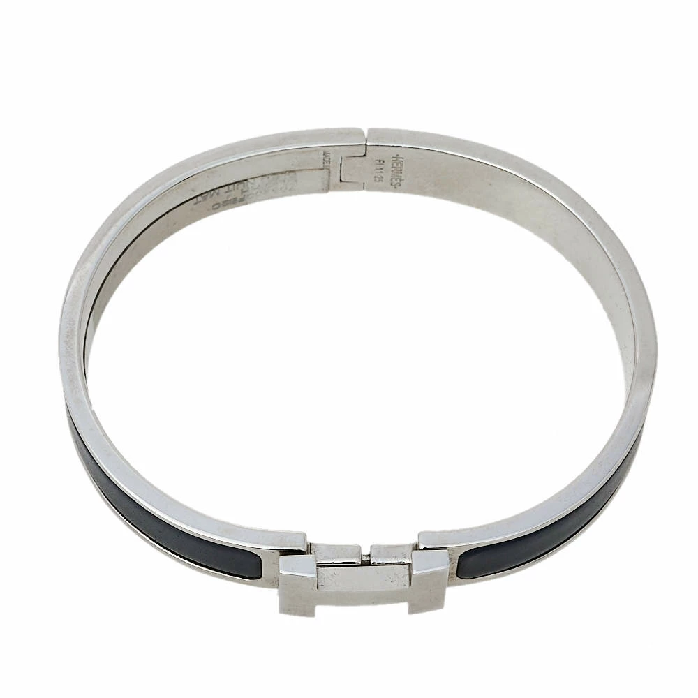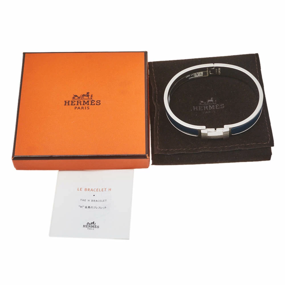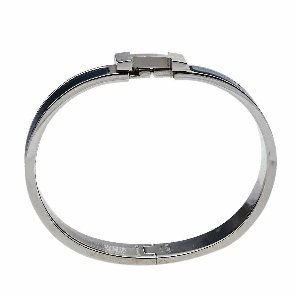 Adorn your wrist with this stunner of a bracelet from Hermes. The piece is from their Clic H collection, and it has been crafted from palladium-plated metal and designed with enamel. This bracelet is complete with the iconic H to the front.