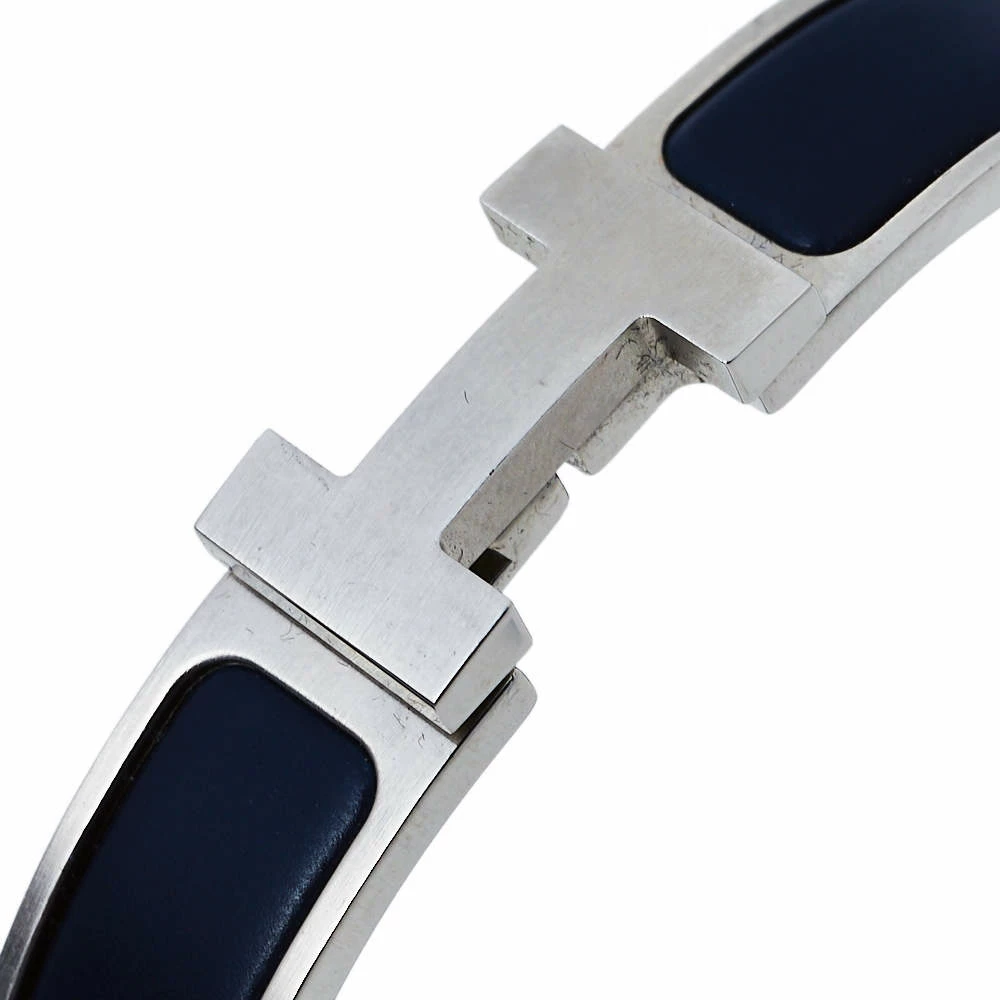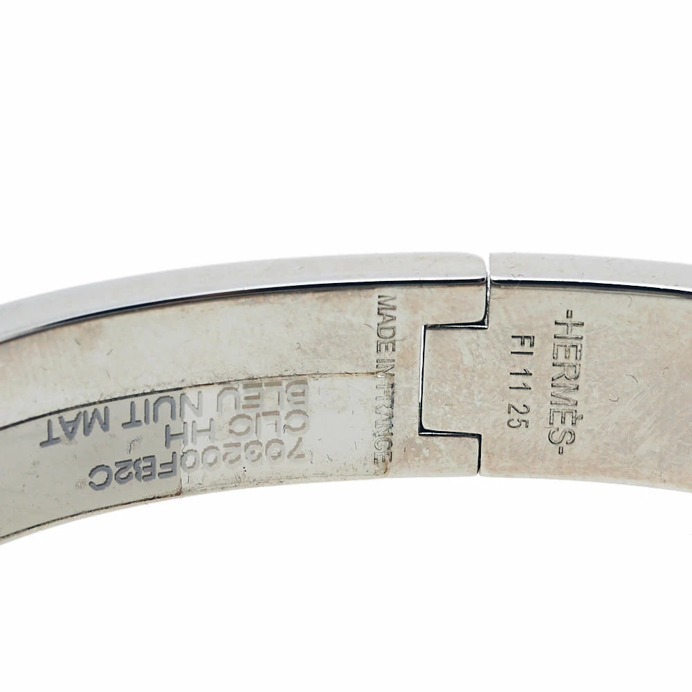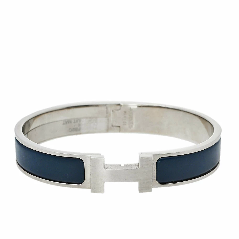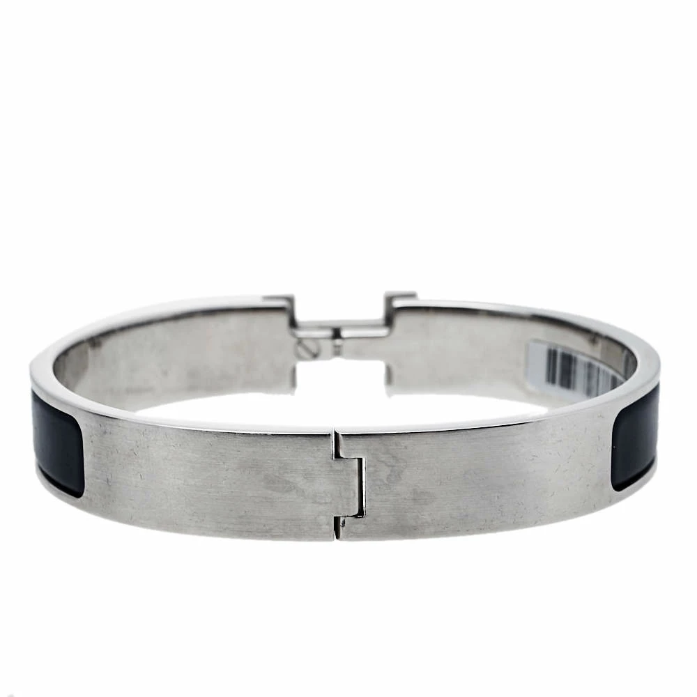 Adorn your wrist with this stunner of a bracelet from Hermes. The piece is from their Clic H collection, and it has been crafted from palladium-plated metal and designed with enamel. This bracelet is complete with the iconic H to the front.