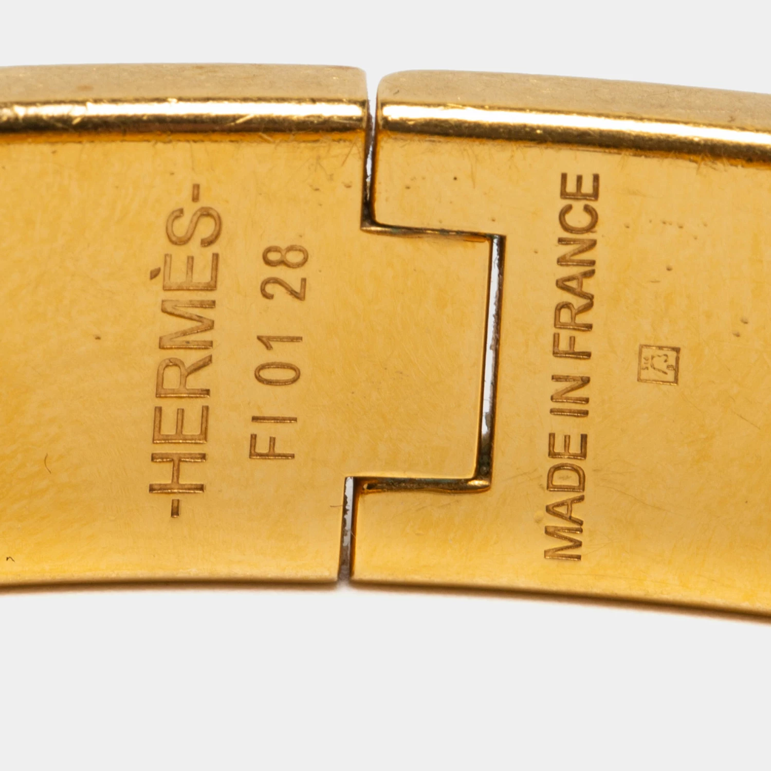 Adorn your wrist with this lovely bracelet from Hermès. The piece is from their Clic H collection, and it has been crafted from gold-plated metal and designed with white enamel. This bracelet is complete with the iconic H.