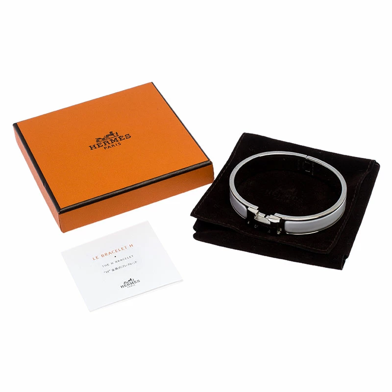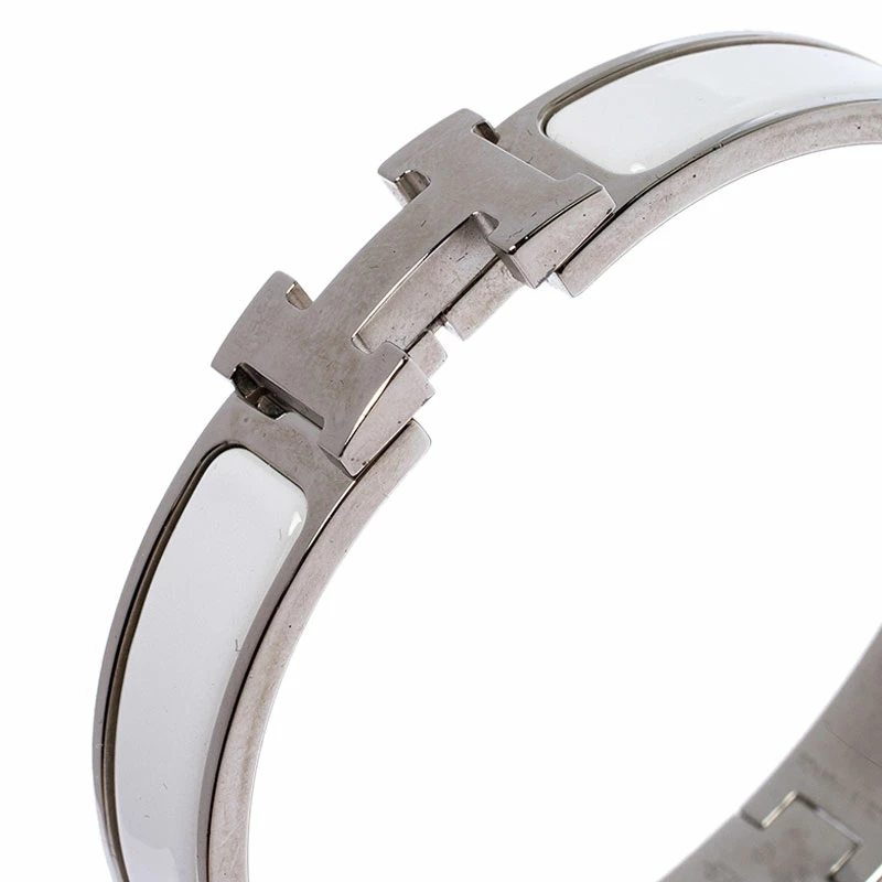 Ace the accessory game when you adorn your wrist with this stunner of a bracelet from Hermes. The piece is from their Clic H collection and it has been crafted from palladium-plated metal and designed with white enamel. This bracelet is complete with the iconic H.