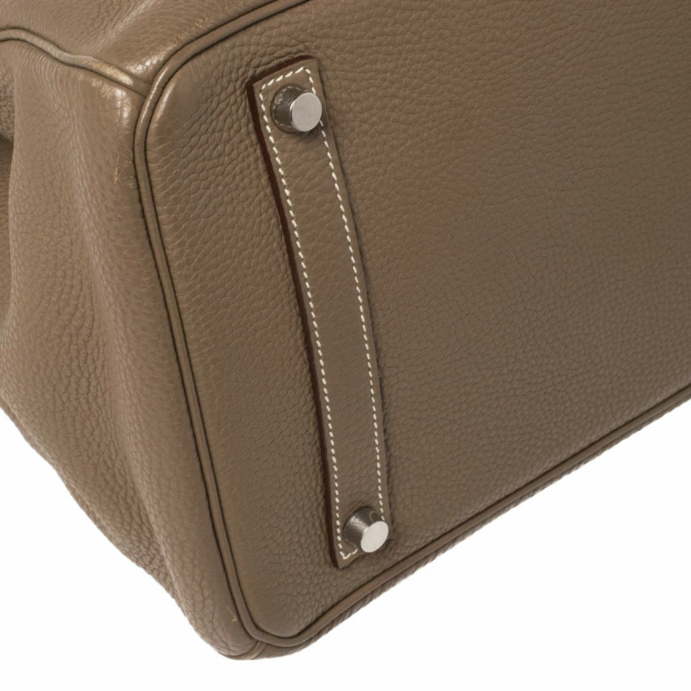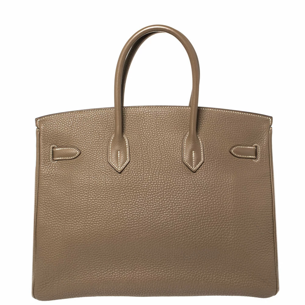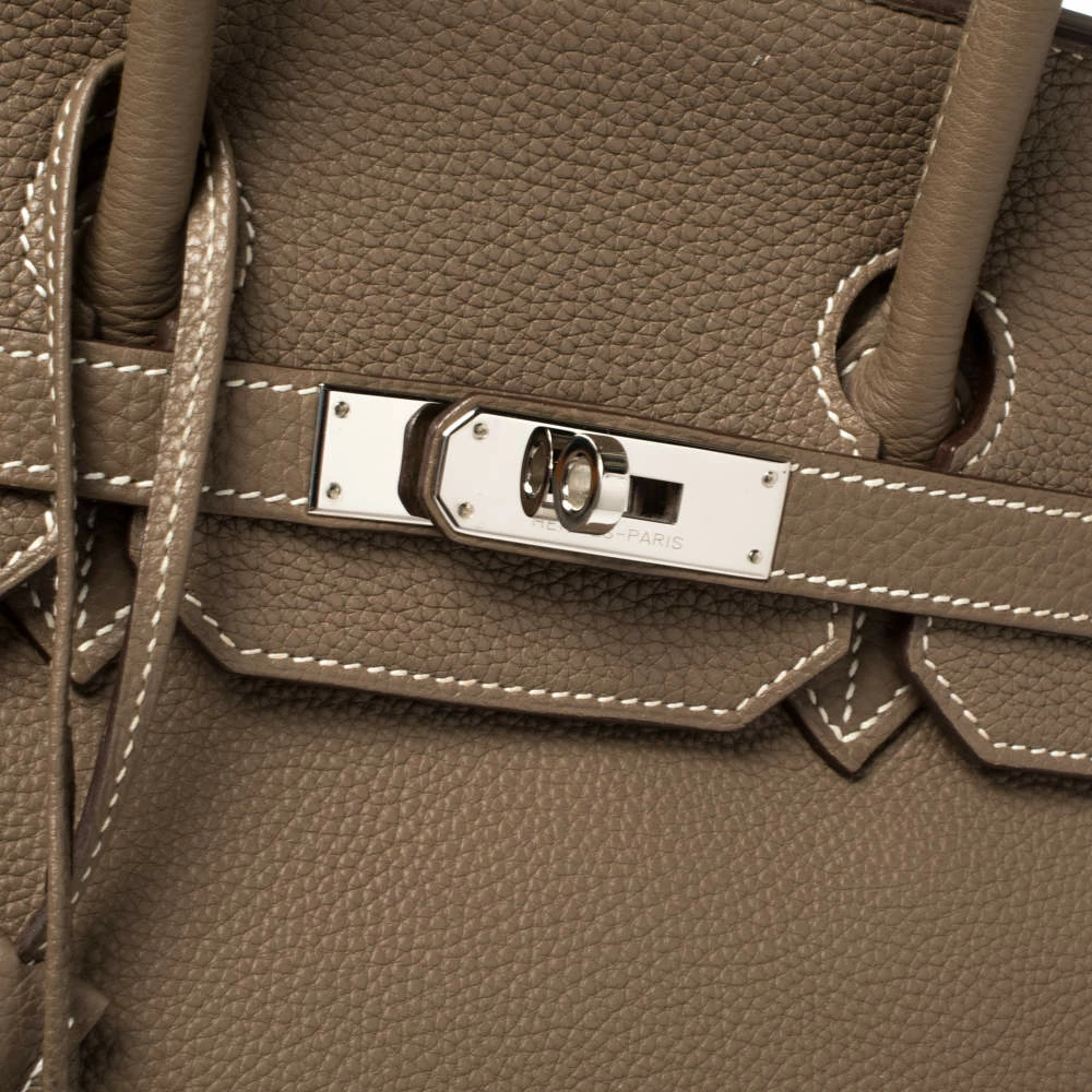 The Hermès Birkin is rightly one of the most desired handbags in the world. Handcrafted from the highest quality of leather by skilled artisans, it takes long hours of rigorous effort to stitch a Birkin together. Crafted in France using Togo leather, the bag features dual top rolled handles and a padlock with its keys within a clochette. The bag comes with palladium hardware and has a spacious leather-lined interior that will hold all your belongings. Durable and resistant to wear, the Birkin is a treasure that can last many years.