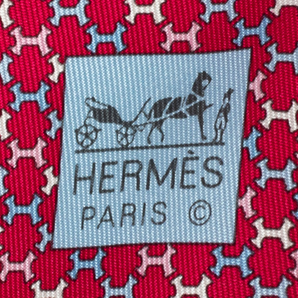 This Hermès tie is a perfect formal accessory that has a sharp and modern appeal. Made from silk, it features a pink shade, intricate patterns, and the brand label neatly stitched at the back. It is sure to add oodles of style to your blazers.