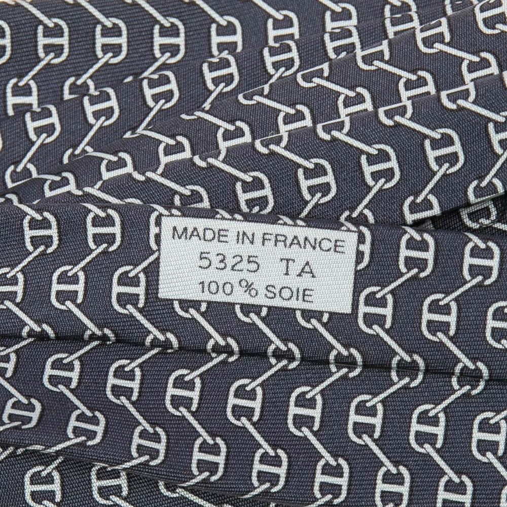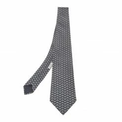 This Hermès tie is a perfect formal accessory that has a sharp and modern appeal. Made from silk, it features an grey shade, intricate patterns, and the brand label neatly stitched at the back. It is sure to add oodles of style to your blazers.
