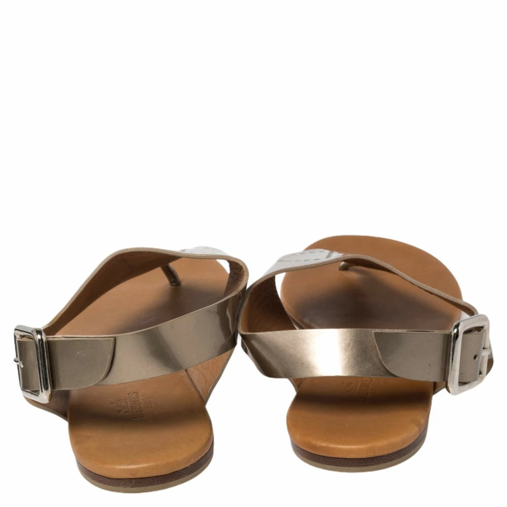 Minimal, versatile, and comfortable, these Kola sandals by Hermès are the type of footwear that deserves to be in everyone’s closet! Crafted from patent leather in a grey shade, the thong sandals are adorned with the H logo, often seen on the Hermès Clemence bag.