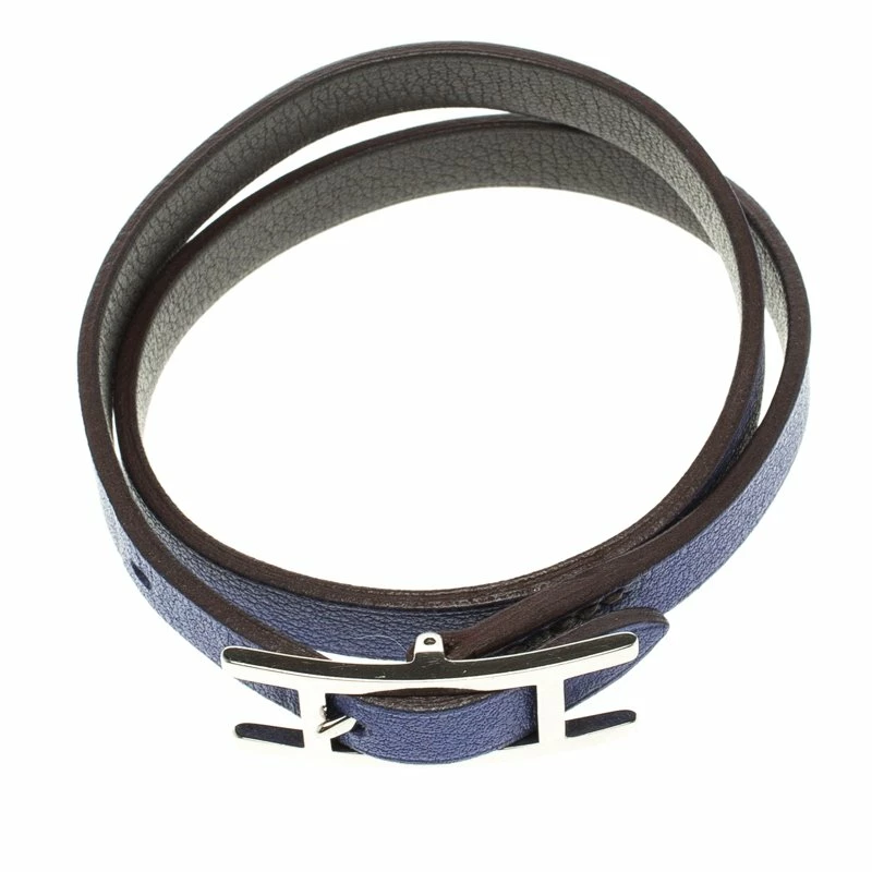 This Hermes 3MM Hapi wrap bracelet in navy blue is made from exquisite leather. With the ‘H’ Palladium plated logo as the buckle, this comfortable bracelet can be easily paired up with a contemporary look.
