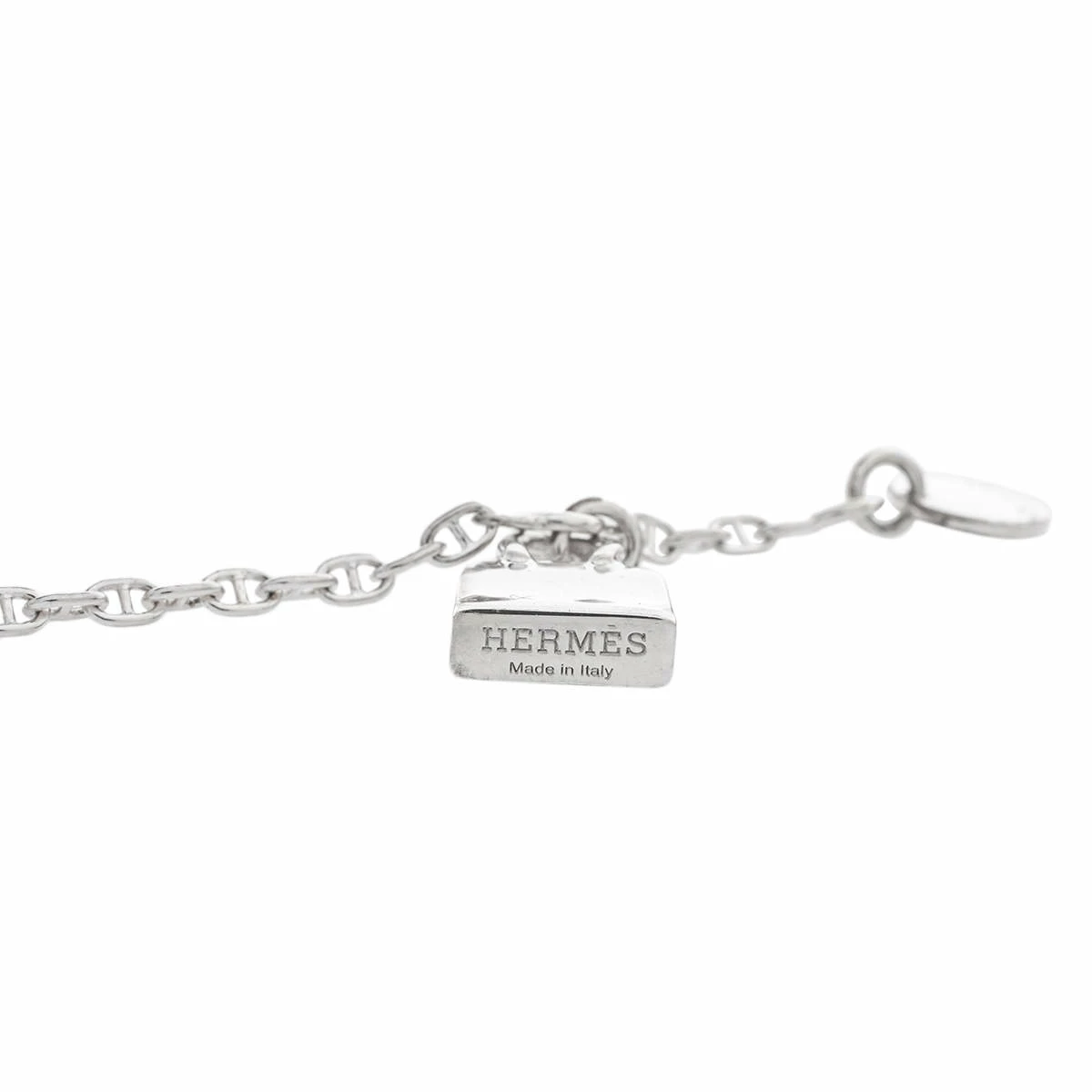 Let your pretty wrist enjoy the company of this lovely bracelet by Hermes. Made from sterling silver, the chainlink holds a cute mini Birkin charm. Eye-catching and easy to wear using the spring-ring clasp, this bracelet will make a fine addition to your jewelry collection.