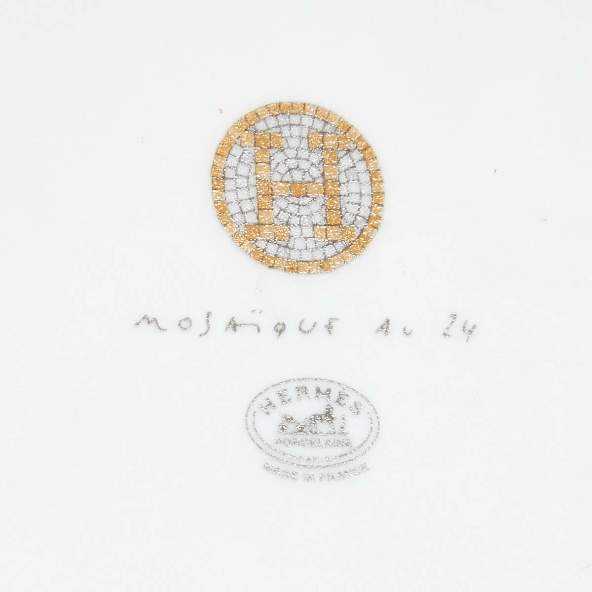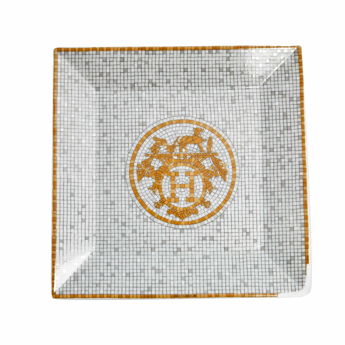 The Mosaique au 24 collection is a tribute to 24 Faubourg Saint-Honoré—the Hermès home. The patterns used are from the mosaic covering the store’s floor. Geometric friezes are laid on porcelain to complete this square plate.
