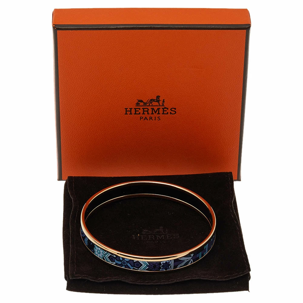 Beautify your wrist with this stunner of a bracelet from Hermes. The piece has been crafted from gold-plated metal and has an enamel coating on the exterior. This bracelet is complete with the iconic label on the inside of this bangle bracelet.