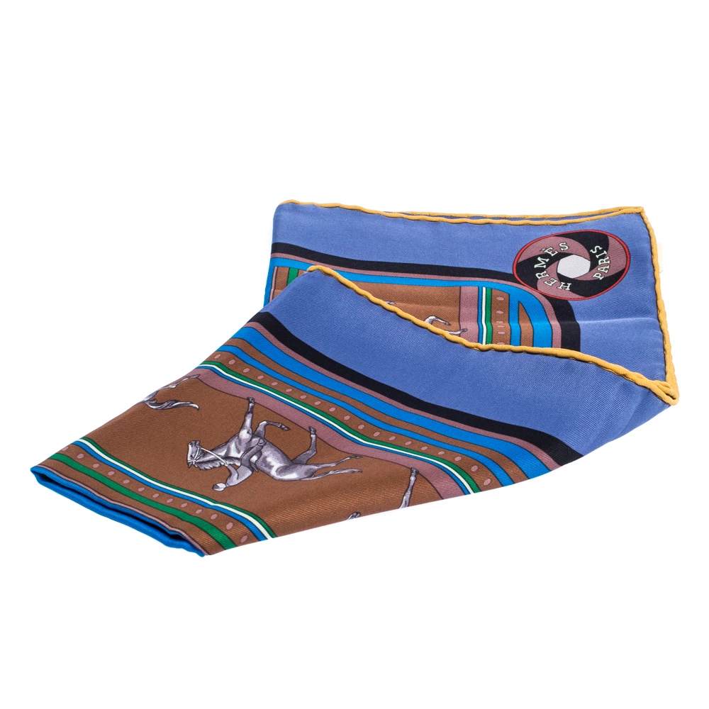 Each Hermes scarf is designed by artists who revel in their artforms, thus making them a treasure. This scarf, made from silk, has prints of stripes and equestrian elements. Designed by Caty Latham, the creation is lively and it has a delicate and soft feel.