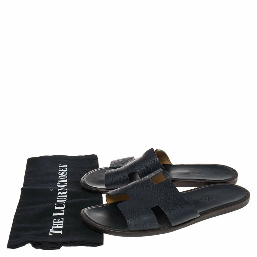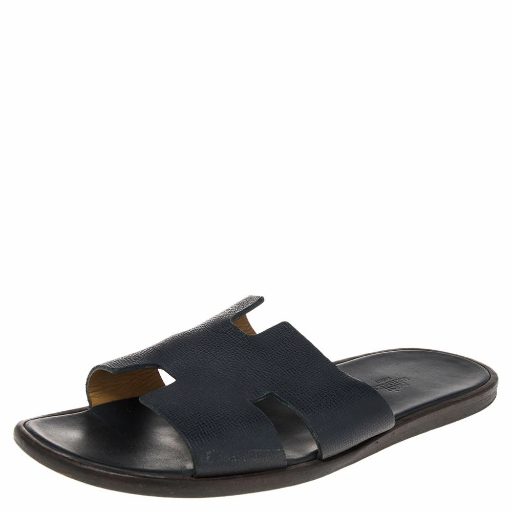 Hermès is a brand that epitomizes art and all their designs have a luxurious blend of comfort and style. These navy blue Izmir sandals have been crafted from leather in Italy and feature the iconic H on the vamp, making it easy to slip on over all your casual outfits.