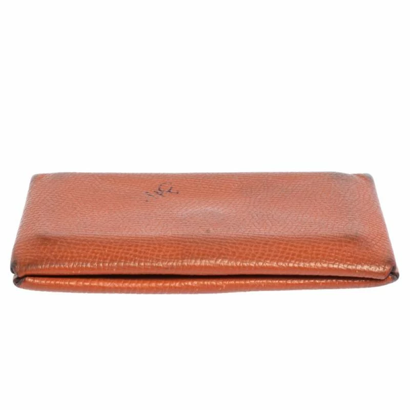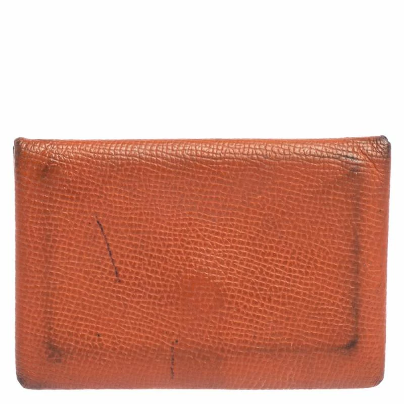 Add a touch of minimized elegance when you style this Hermès Calvi card holder with your favorite accessories. Much coveted amongst contemporary fashionistas, this cardholder has a simple silhouette and is secured with a snap button fastening. It is made of leather and features the brand label on the inside.
