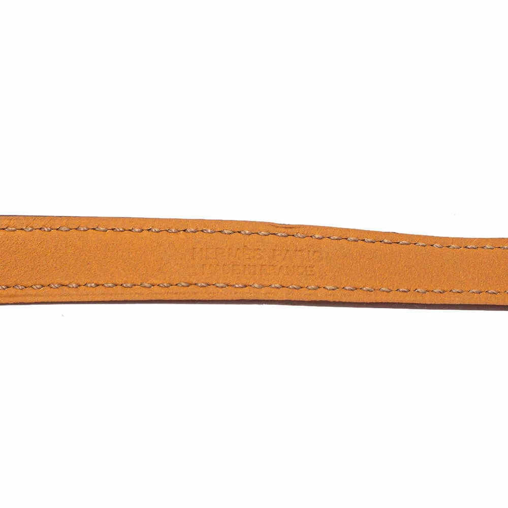 This Hermès Double Tour bracelet is a chic accessory that can be paired with everything, from casuals to evening outfits. Made from leather, it is beautified with pyramid studs and a ring in palladium-plated metal. The orange bracelet has a long strap that wraps around your wrist twice.