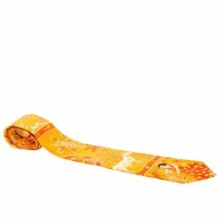 Speak luxury through your choice of accessories with this orange tie from Hermès. It has been cut from silk and designed with gorgeous prints all over and the label as the keeper loop on the back.