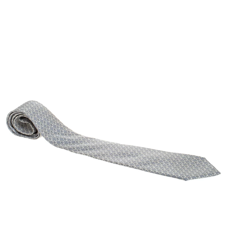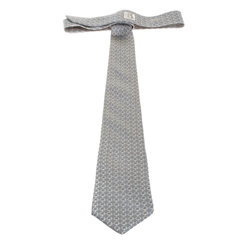 Here’s your chance to add a piece from Hermès’ accessory line to your closet. The pale grey tie is made from silk and designed with chain link prints all over and the brand label loop at the back. It can be a great touch to your formals.