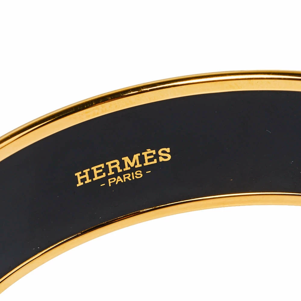 Beautify your wrist with this stunner of a bracelet from Hermes. The piece has been crafted from gold-plated metal and has peach-hued enamel coating on the exterior. This bracelet is complete with the iconic label at the front and on the inside of this bangle bracelet.