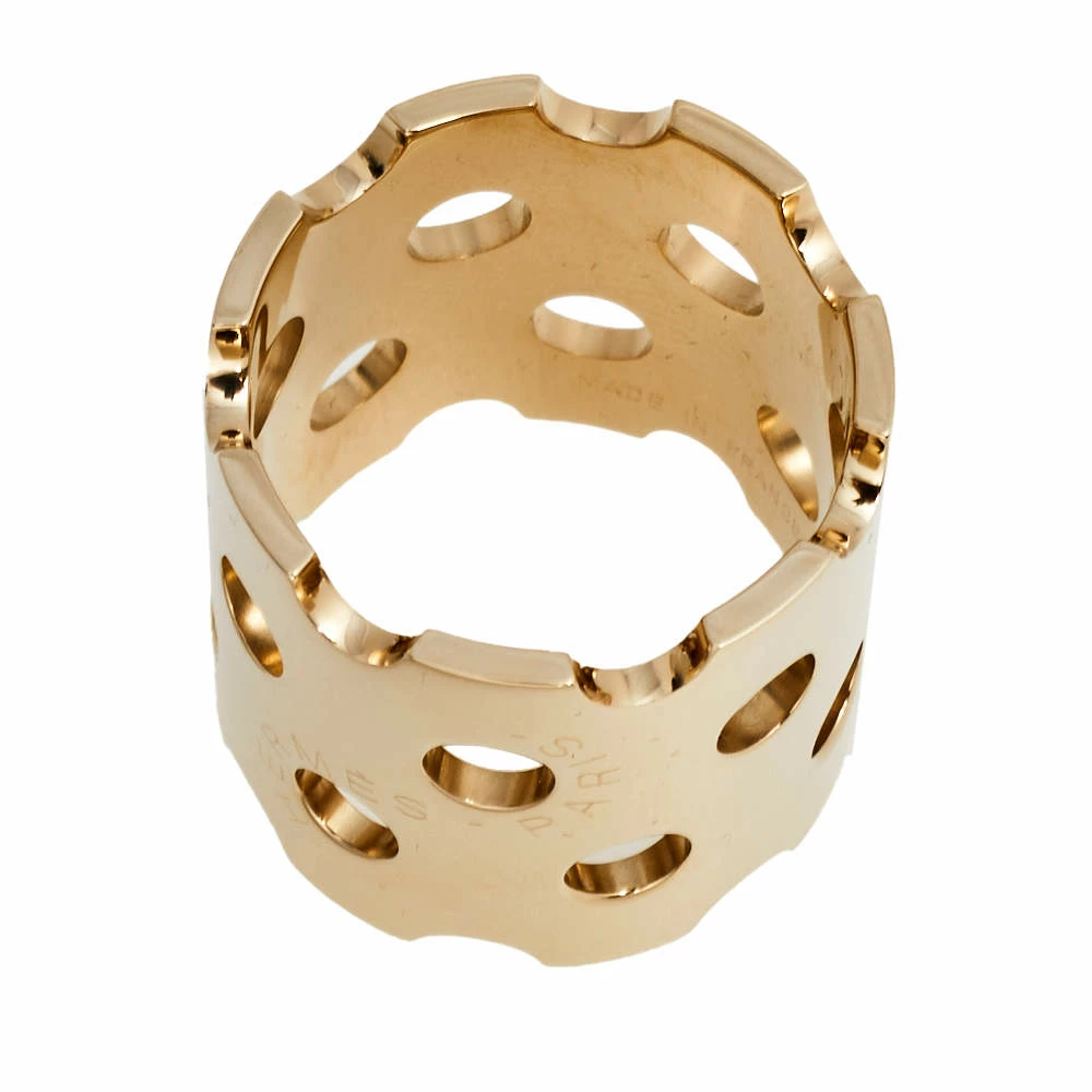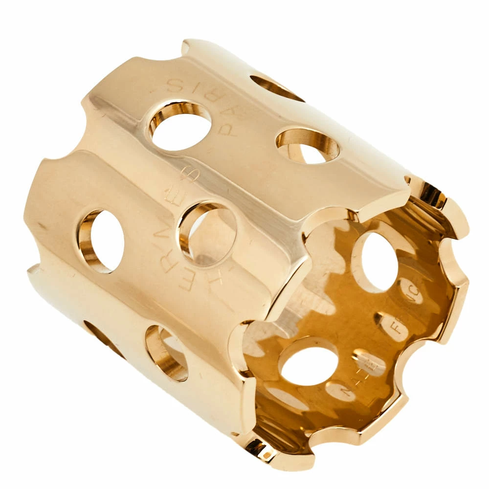 Use this elegant and valuable piece by Hermes to secure your favorite scarf ties in style! The ring is crafted from permabrass and designed with perforated details. Replace the knot with this chic ring for a simpler and more fashionable look.
