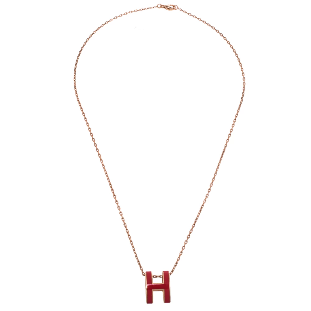 A statement creation by Hermès to elevate your style. The exquisite creation is crafted from rose gold-plated metal, and it comes with an H pendant coated in red lacquer.