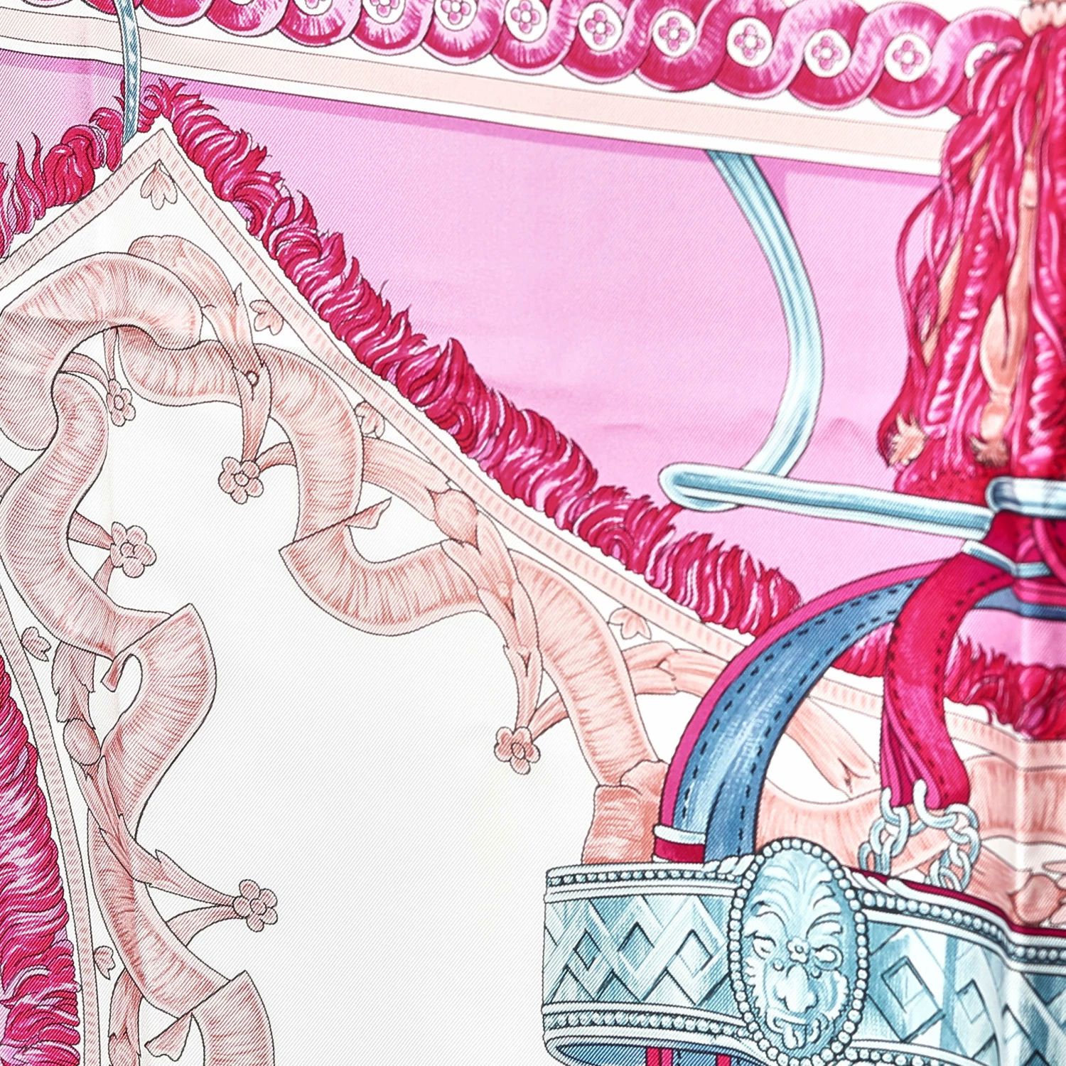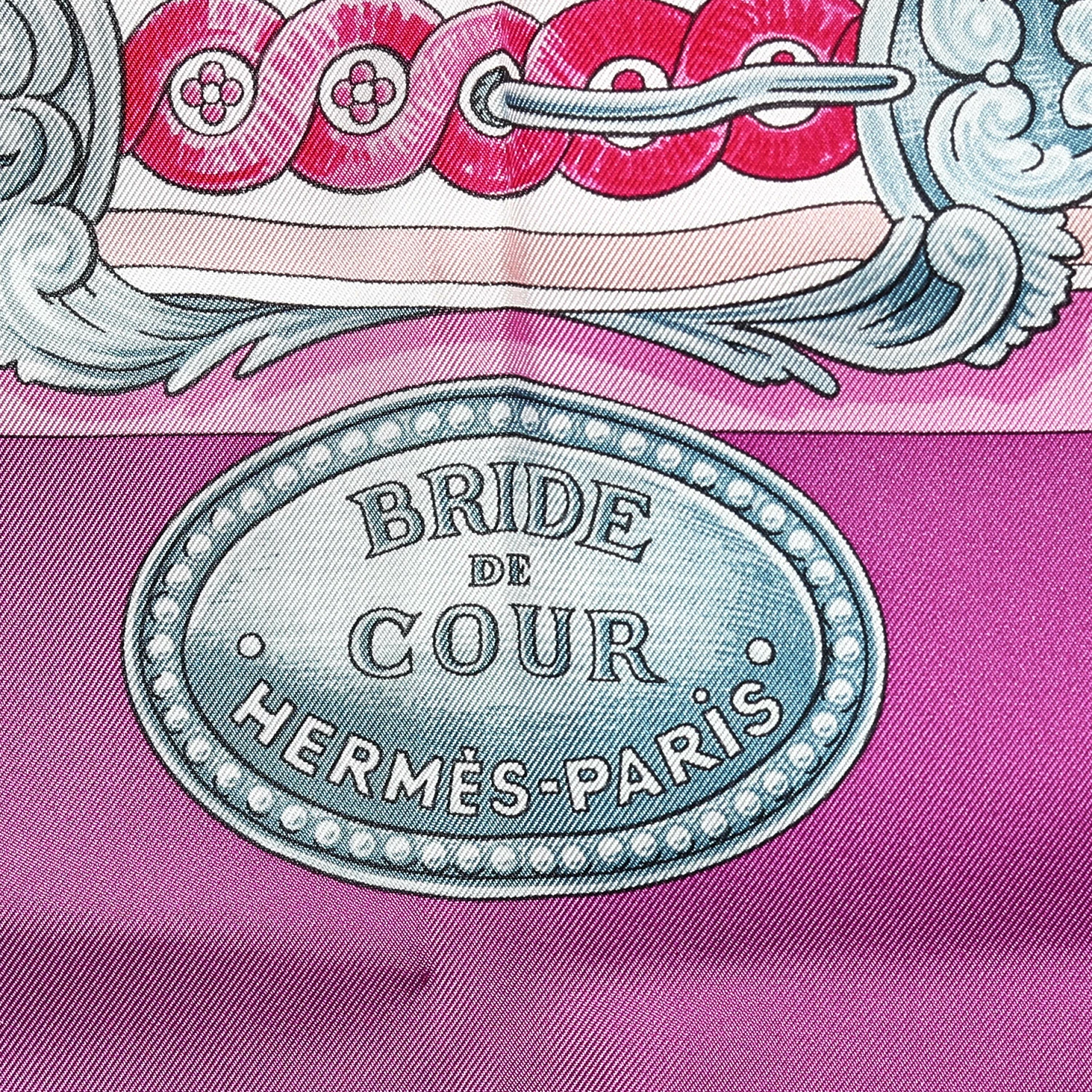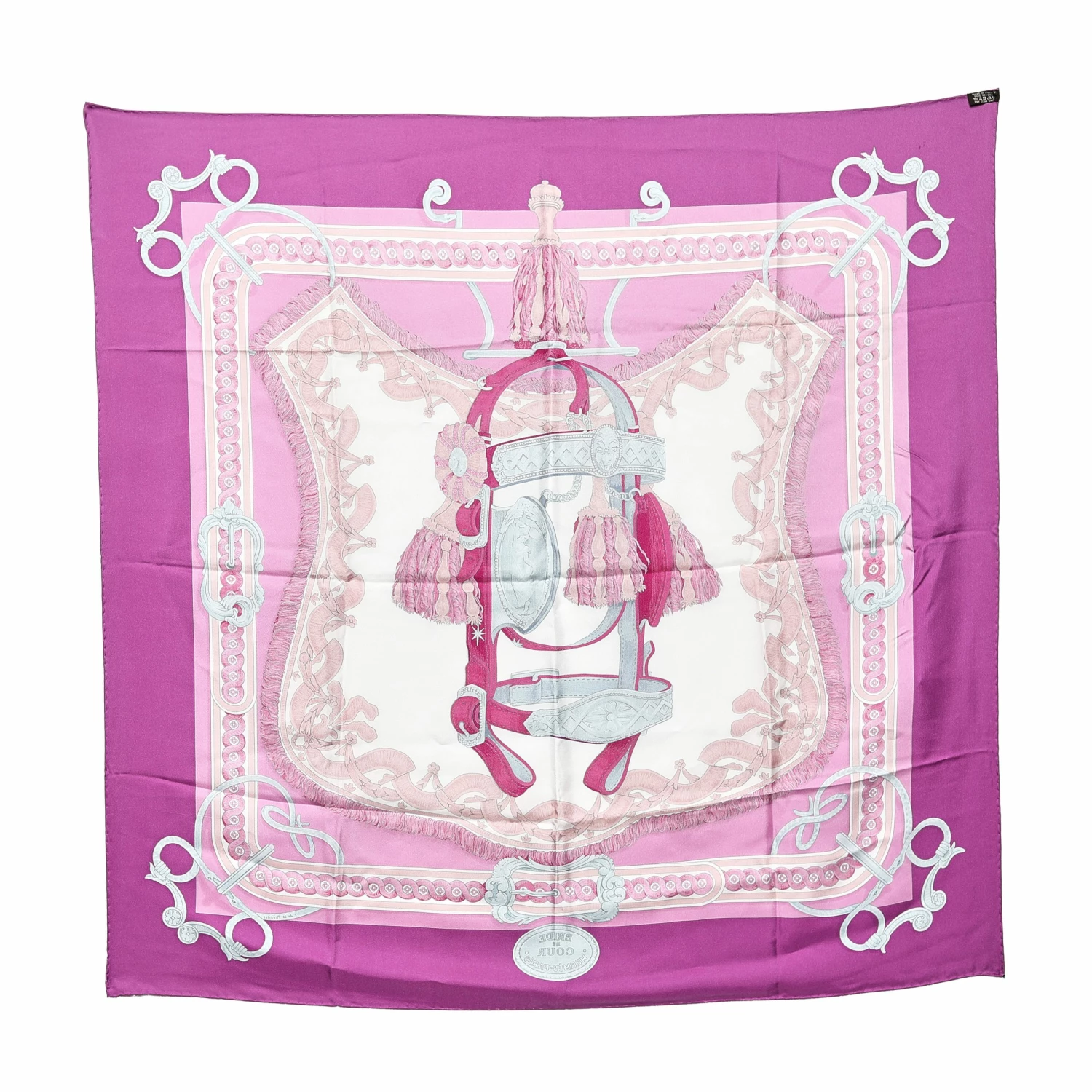 Hermés, with its quaint and vintage aesthetic, makes its creations appear simply unique. This scarf is stitched using purple silk, which is augmented by a Bride De Cour print. This scarf has a squared shape measuring 88 cm x 88 cm. Look classy as you accessorize with this piece.