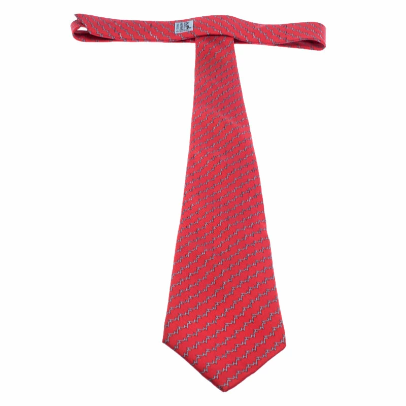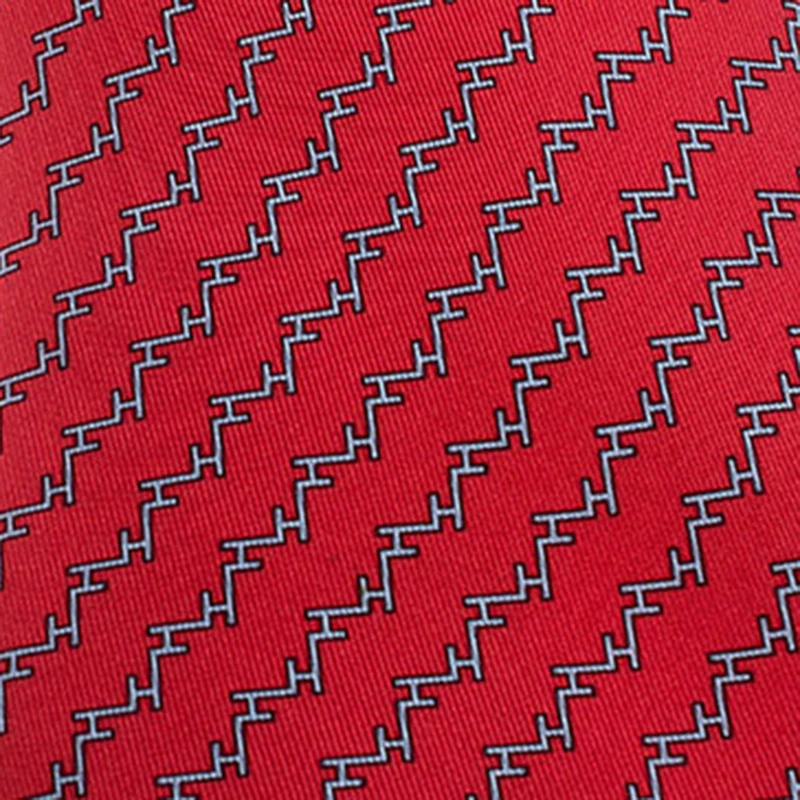 The classic geometric patterned silk tie makes for a versatile accessory. The long tie has a pointed tip and the Hermes label as a keeper loop. This tie is sober enough to be worn with formals yet cheerful enough to be worn without a jacket.