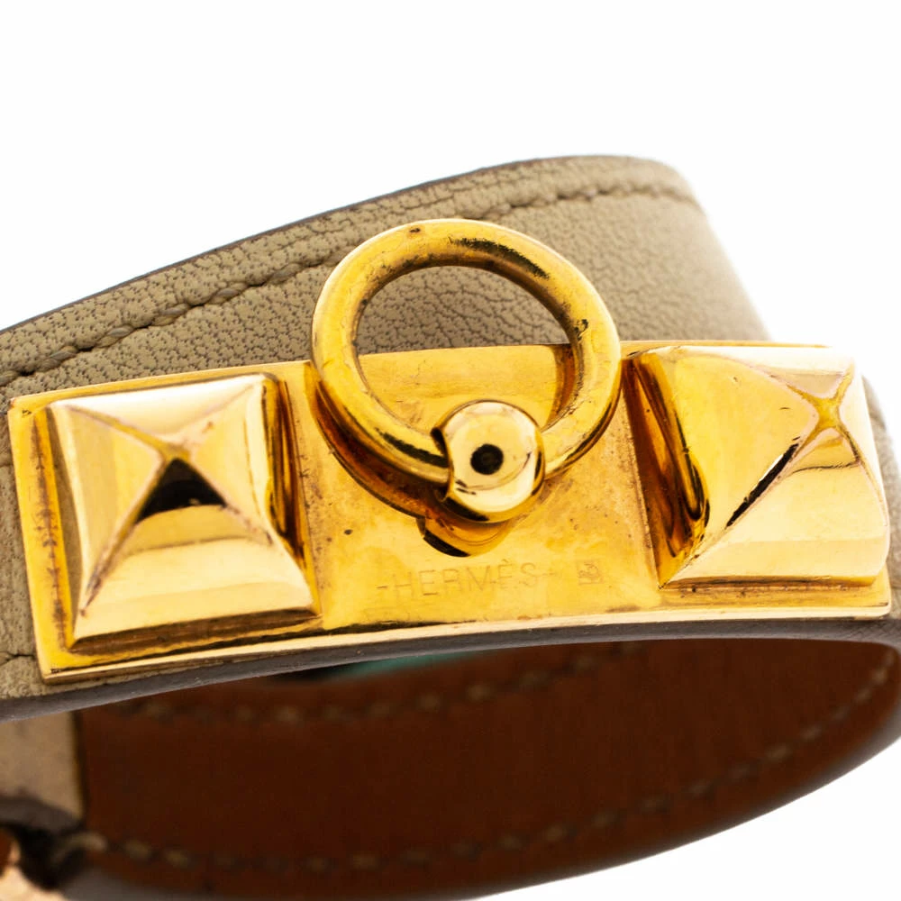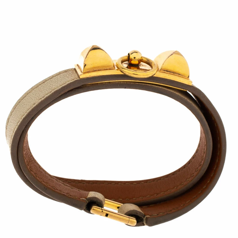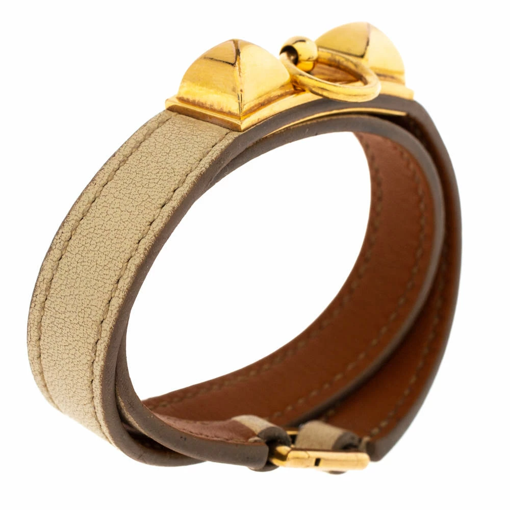 Hermes presents you with this accessory that will be a superb addition to your trendy looks. Designed to wrap around your wrist, this Rivale bracelet has been crafted from quality leather. It is decorated with gold-plated metal and completed with pyramid stud details. Flaunt this piece with your everyday outfits.