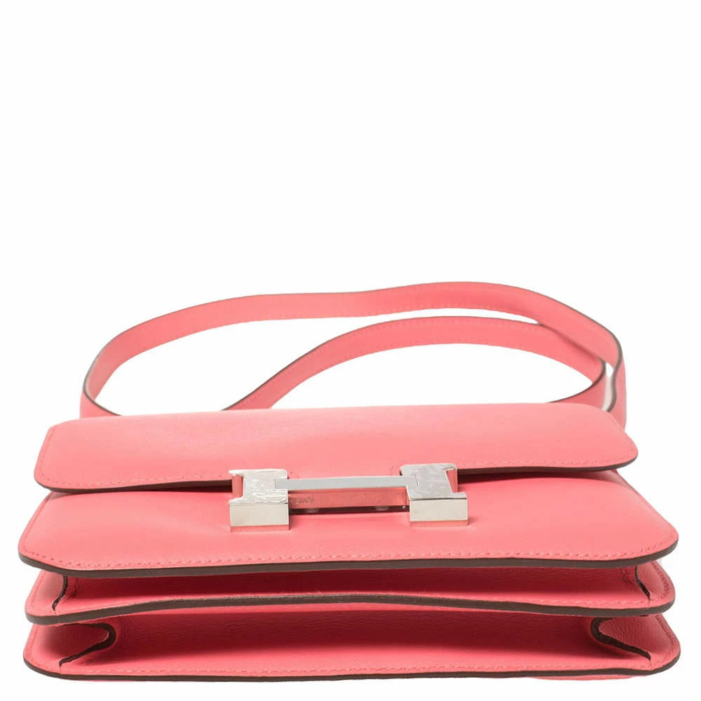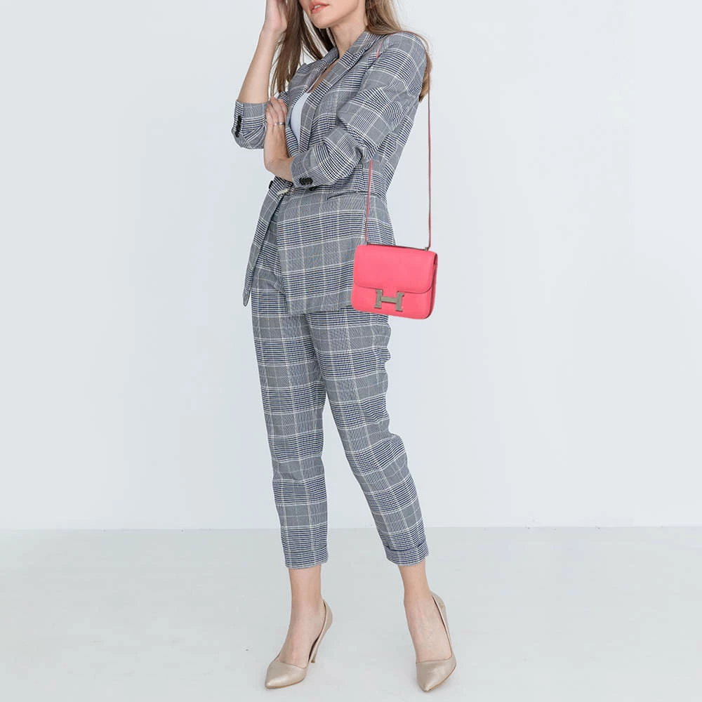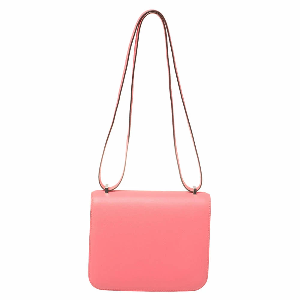 This elegant bag was named after the newborn daughter of Hermés’ designer, Catherine Chaillet, and was created in 1969. The creation is handcrafted in Swift leather in a Rose Azalee hue and features the iconic H clasp on the front flap made from palladium. The shoulder straps let you carry it gracefully, and the sturdy silhouette is loved by fashionistas worldwide. Get this covetable piece for yourself today!
