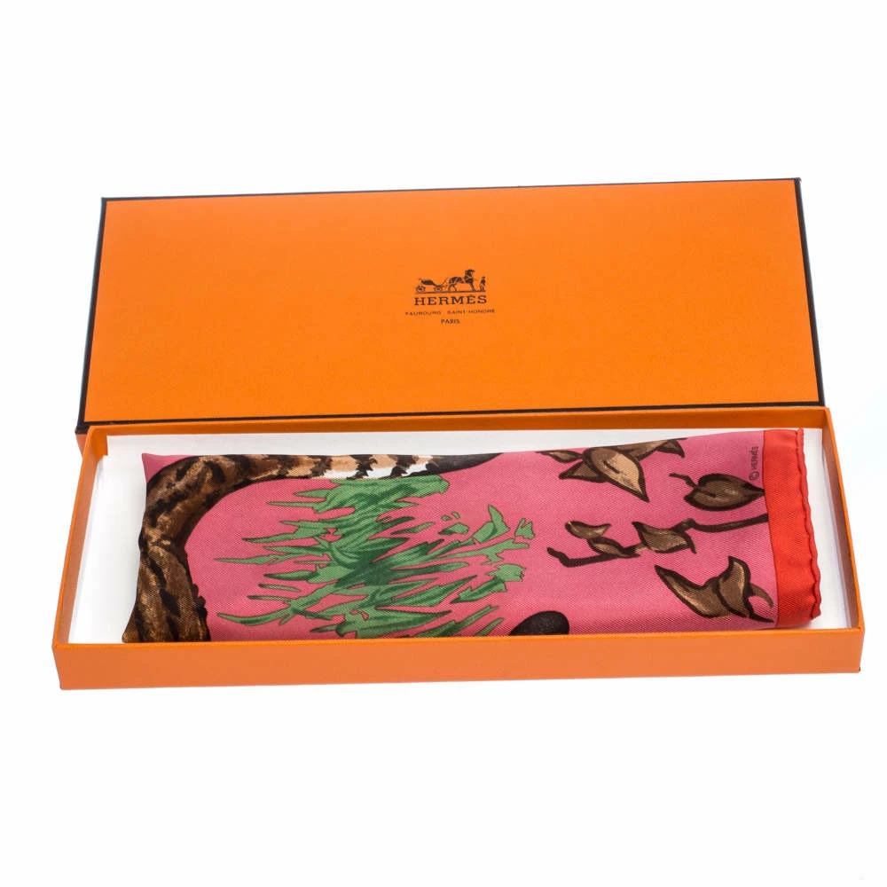 Each Hermes scarf is designed by artists who revel in their artforms, thus making them a treasure. This scarf, made from silk, has prints of two tigers with nature. Designed by Robert Dallet, the creation is lively and it has a delicate and soft feel.