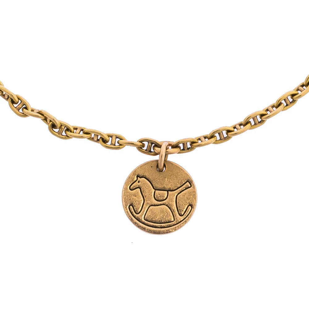 Adorn your wrist with this dreamy Hermès bracelet which has been crafted using 18k rose gold and designed with three horse-detailed charms. It comes with a spring-ring clasp and is sure to go well with any ensemble.