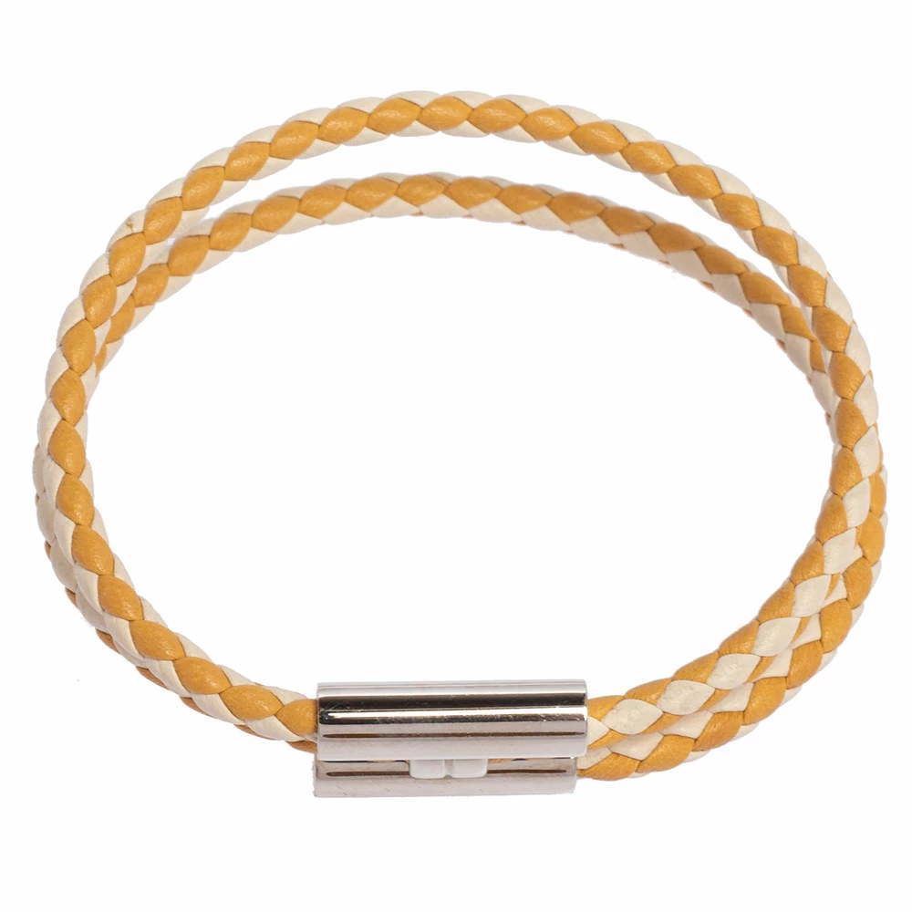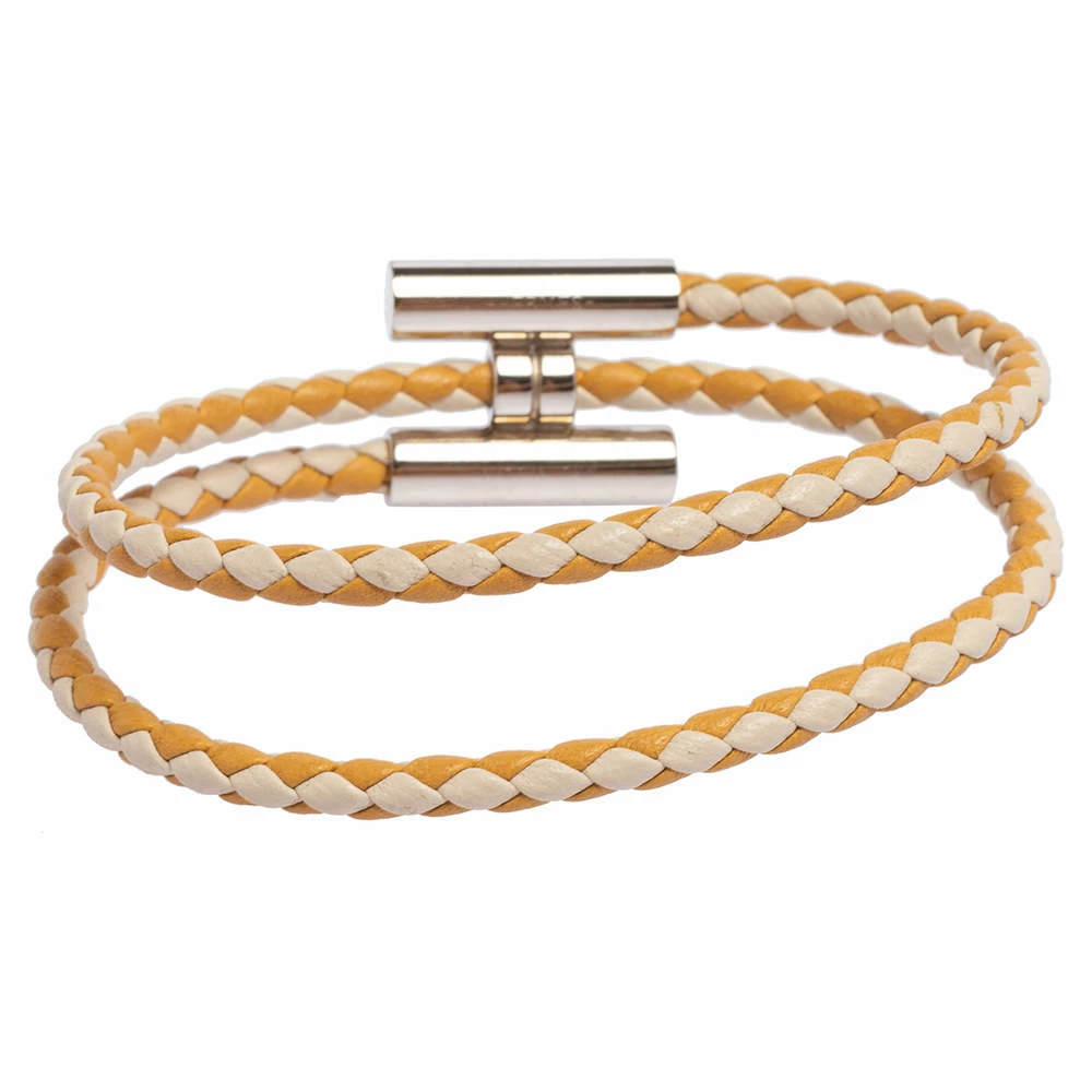 The fashion house of Hermés creates the chicest and effortlessly beautiful design just like this Tournis Tresse bracelet. Constructed from woven leather, this bracelet wraps around your arms and further connects together with a palladium plated H closure in the middle.