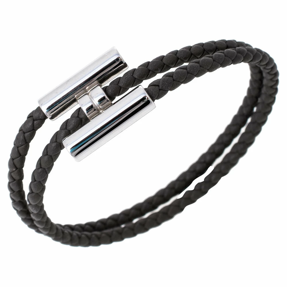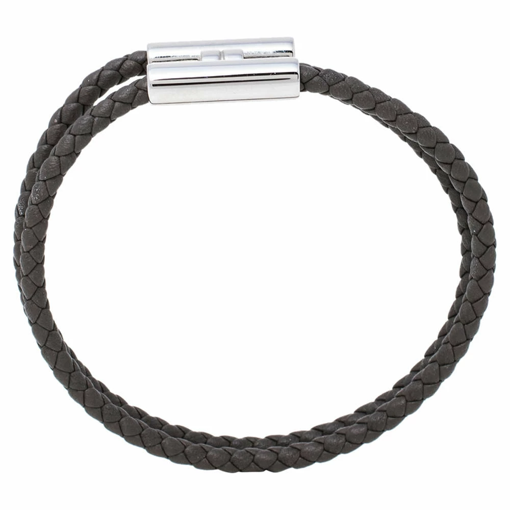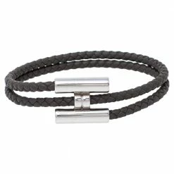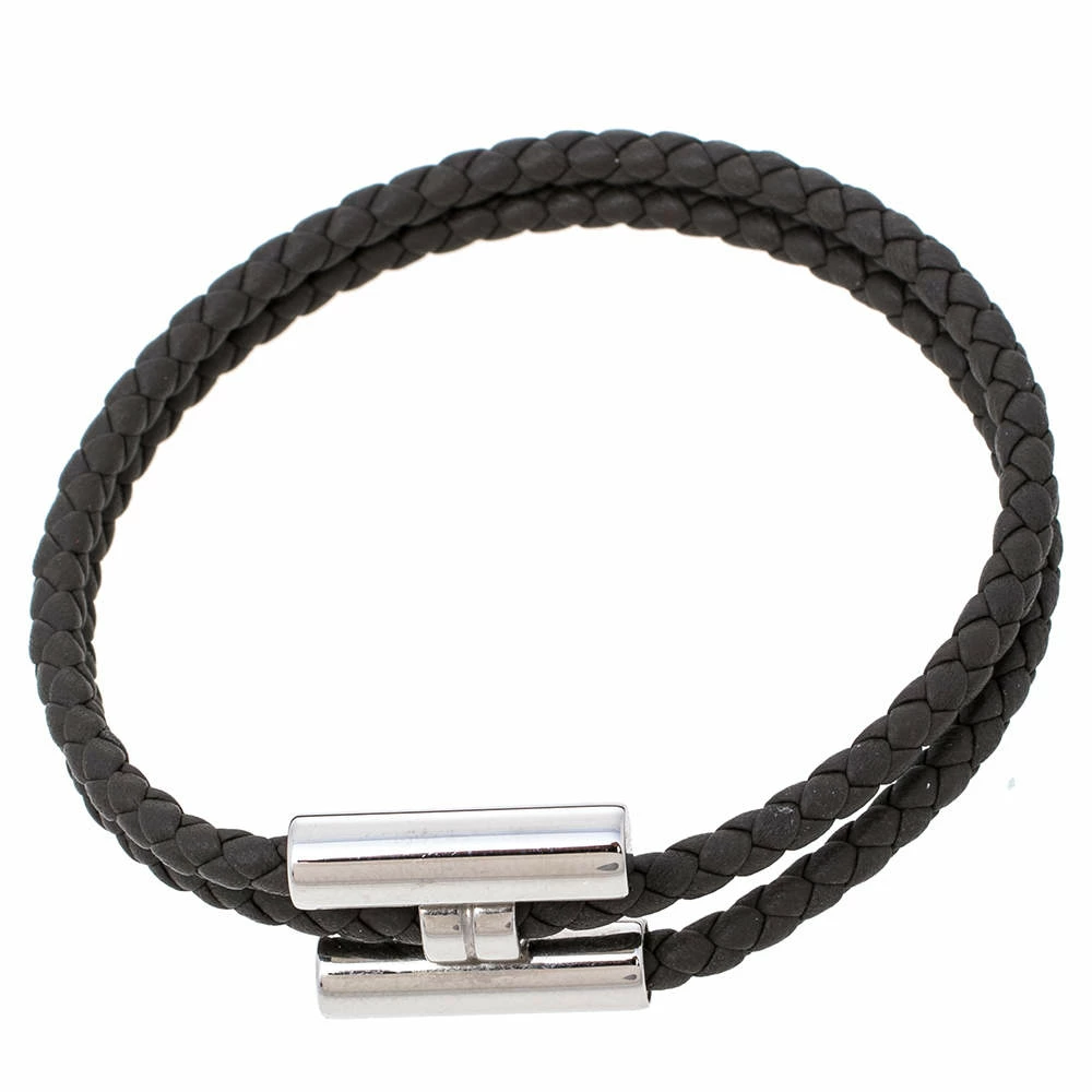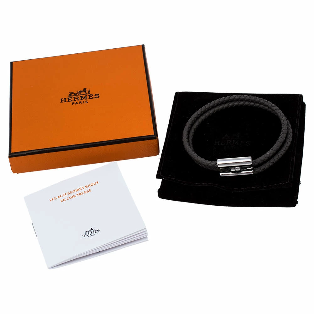 Hermes creates the chicest and effortlessly beautiful design just like this Tournis Tresse bracelet. Constructed in woven leather design, this black bracelet wraps around your wrist and further connects together with a palladium-plated H closure in the middle.