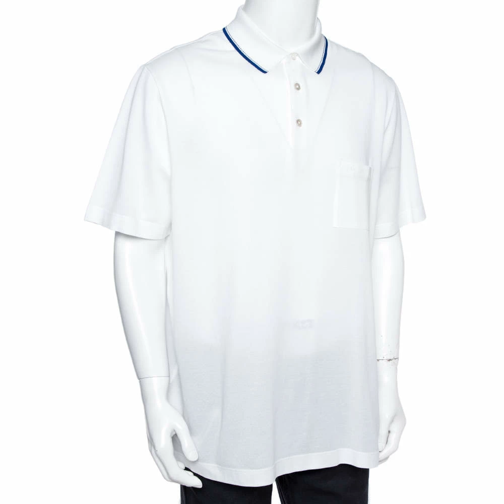 Keep your casual look stylish with this polo T-shirt from Hermès. Made from lightweight cotton, this white t-shirt features a classic collar and short sleeves that look smart.
