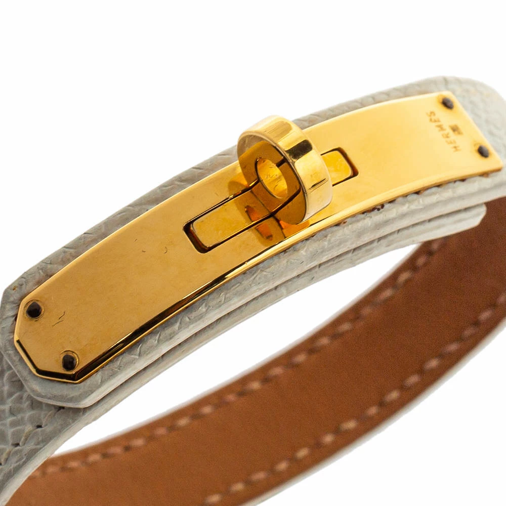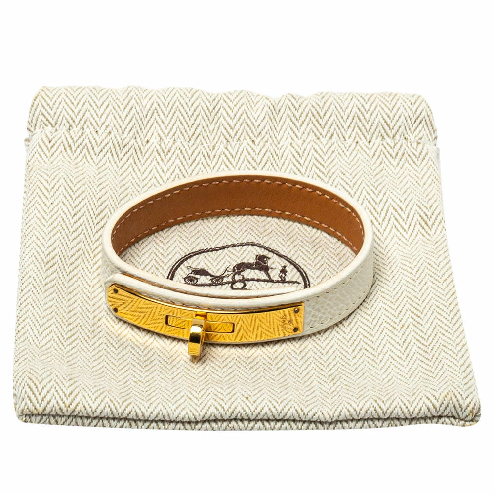 This Kelly Single Tour bracelet has a white leather strap to wrap around your wrist once and a signature Kelly lock in gold-plated metal is provided to help fasten this wonder. There is no reason why you should not own this beauty from Hermès.