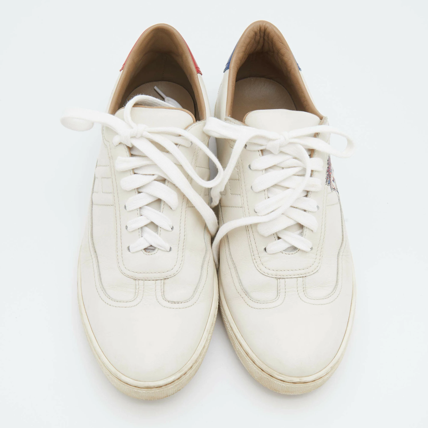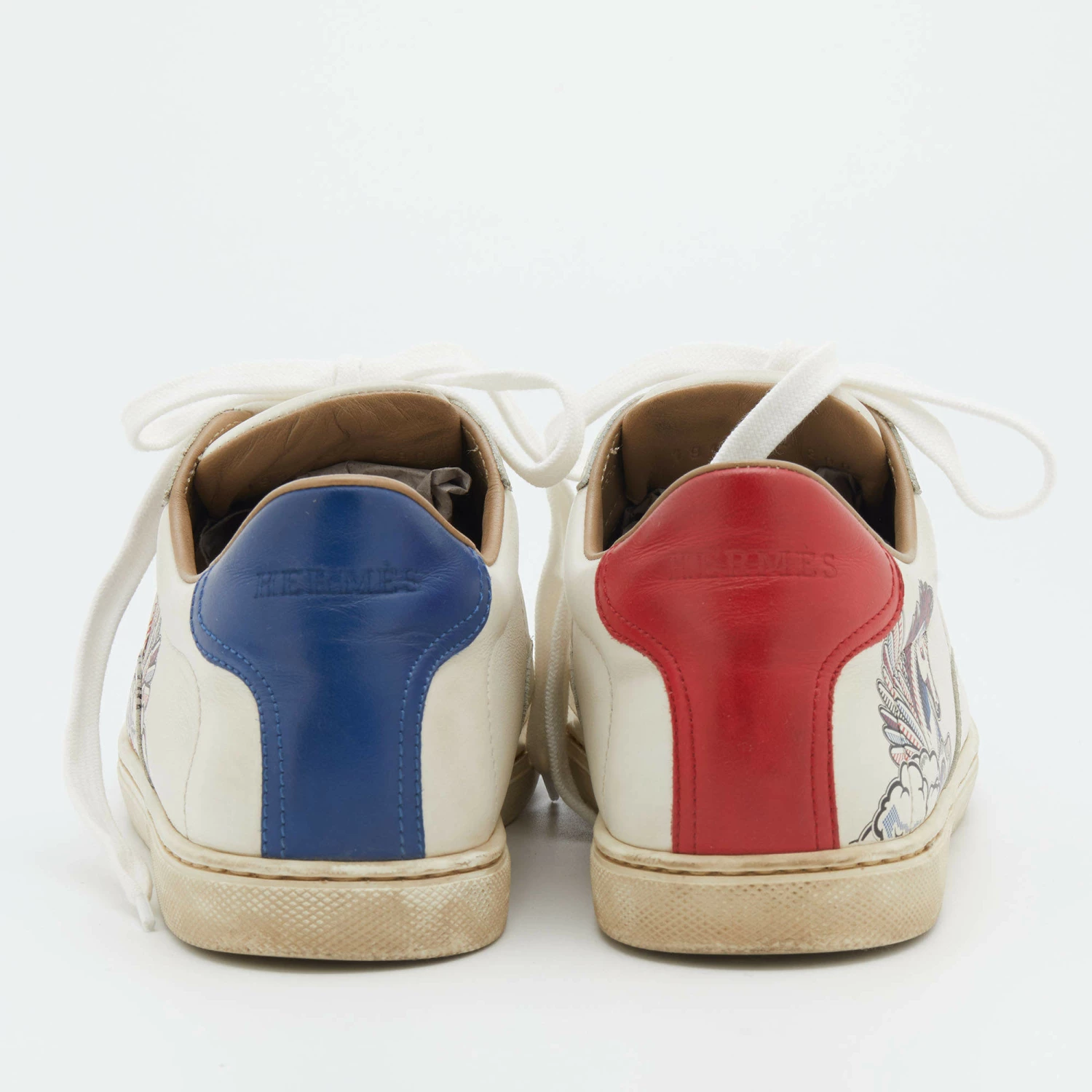 Coming from the House of Hermés, these Quicker sneakers are a great addition to your luxury collection. They are crafted using white leather, which is highlighted with a multicolored Pégase pop print. Their low-top silhouette showcases lace-up on the vamps and sturdy rubber soles.
