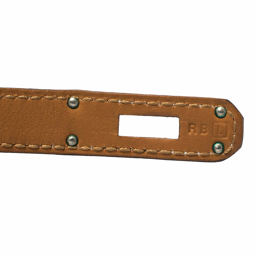 Embrace the season’s latest trend with this choker necklace from the house of Hermes. It features a brown leather body detailed with contrast stitching and highlighted with two palladium plated metal turn-locks. This offbeat yet edgy piece looks best when styled with off-shoulder silhouettes for maximum impact.