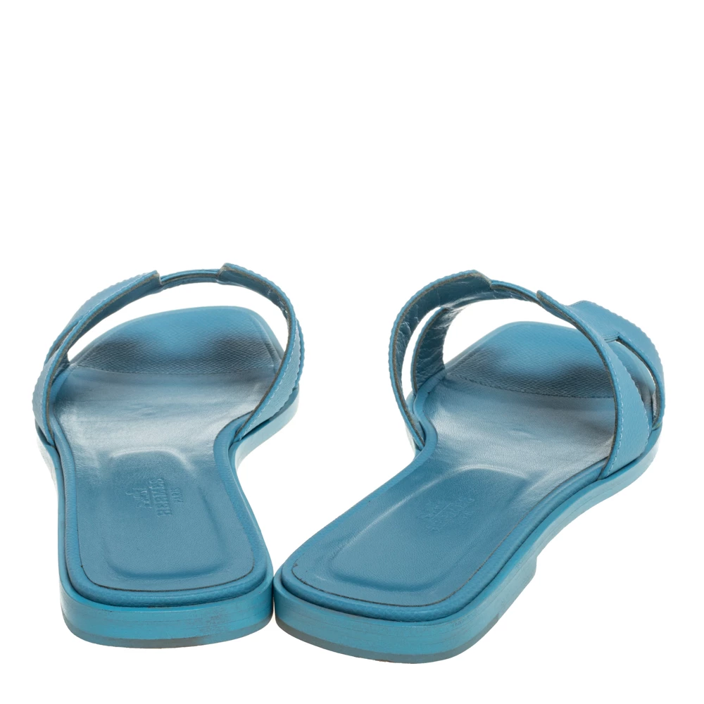 Put your best foot forward this season in these pretty Hermes sandals. These light blue Oran sandals have been crafted from leather in Italy and they feature the iconic H on the vamps as well as insoles meant to provide comfort at every step. These sandals are sure to attract admirers!