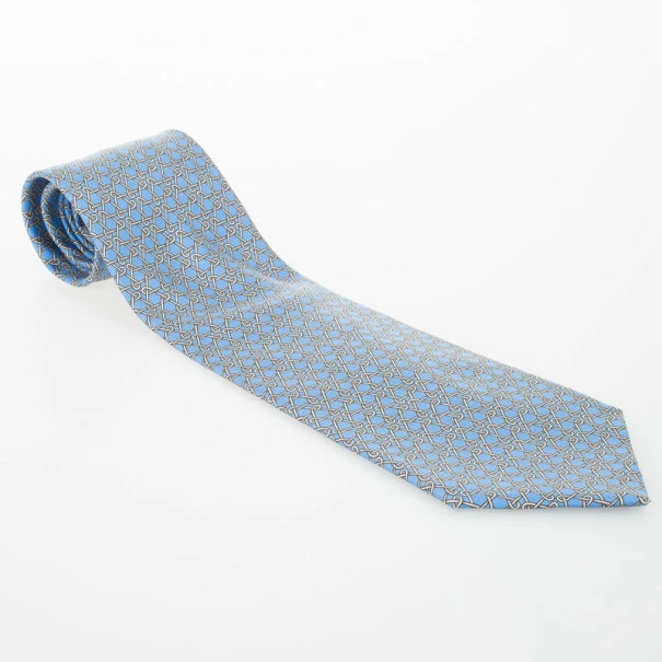Hermes Light Blue Triangle Chain Silk Tie For Men