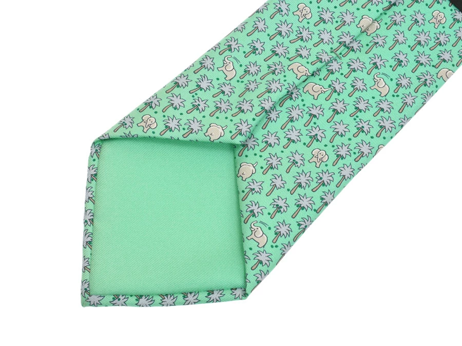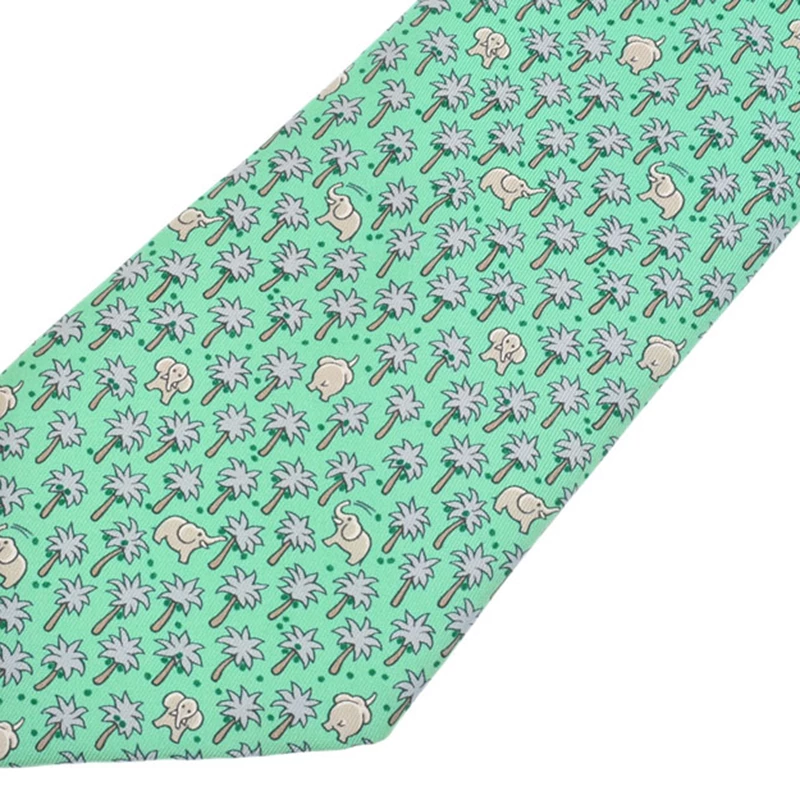 Inject some colour into your outfit with this elegant Hermes silk tie. Featuring a charming elephant motif, this lovely light green tie is the perfect way to up your vibrancy game. Sharpen your outfit by wearing this stylish tie.