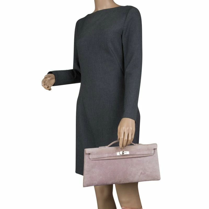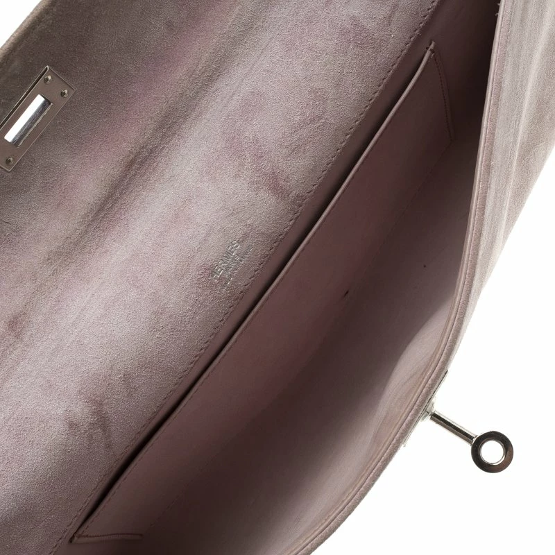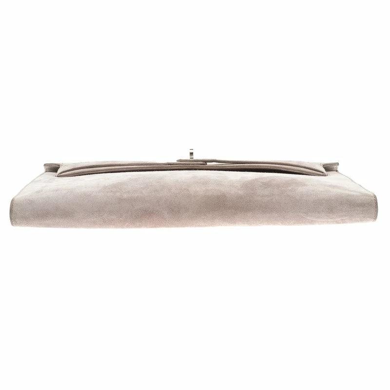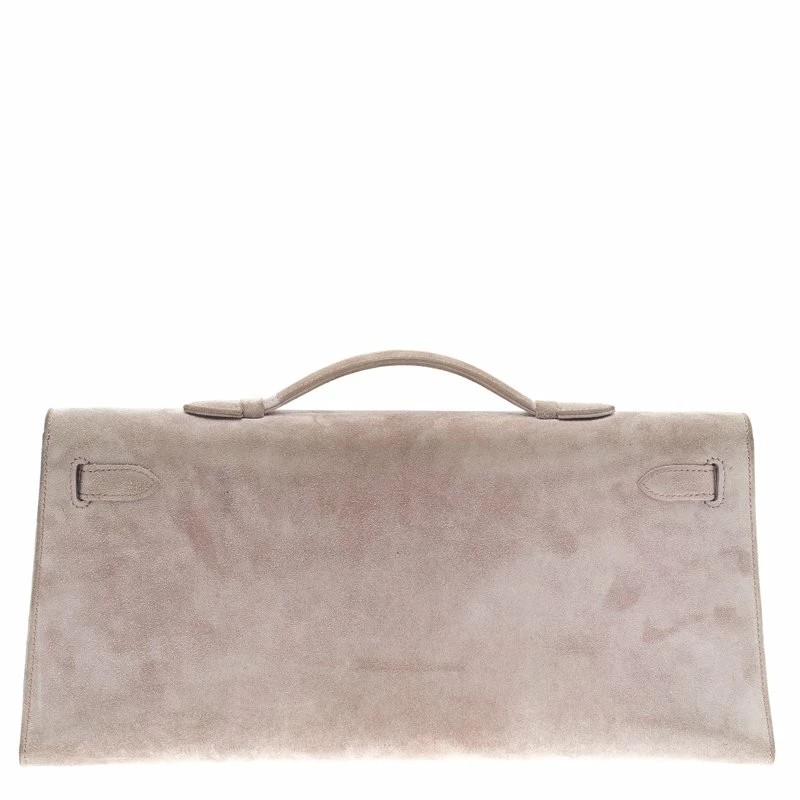 The range of Kelly bags was Inspired by none other than Grace Kelly of Monaco. Kelly clutch is carefully hand stitched to perfection. Crafted from suede it has a slim silhouette that’s easy to carry. The clutch comes with palladium hardware and the signature Kelly lock closure opens to a leather lined interior that will hold your essentials. Own this gorgeous Hermes Kelly Longue clutch today and light up your closet!